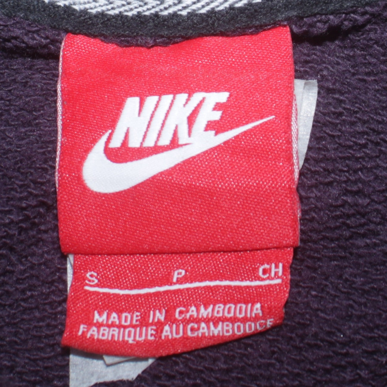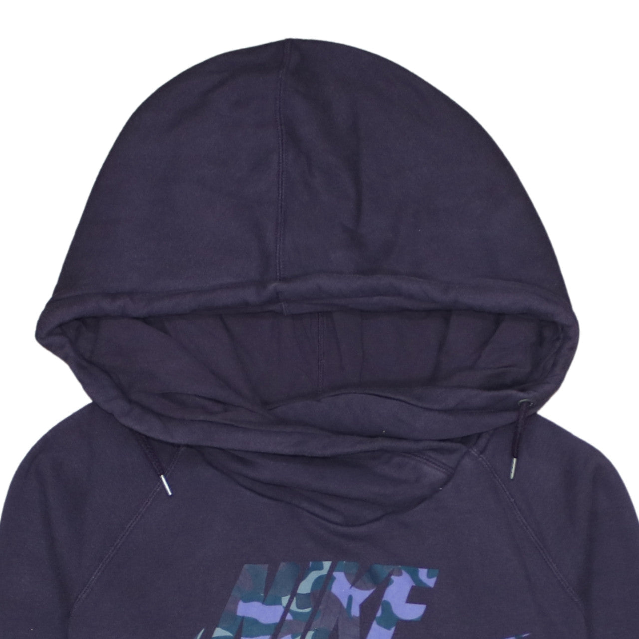 Refresh your casual wardrobe with this stylish Nike women’s hoodie in a deep purple shade. Made from soft fleece-blend fabric, this pullover features a bold camo Nike swoosh logo across the chest, adding a statement graphic touch to your look. Designed with a comfortable hood and front kangaroo pocket, it offers both style and practicality for everyday wear. Its ribbed cuffs and hem ensure a snug fit while maintaining ease of movement. Perfect for layering, this hoodie works just as well on a breezy evening run as it does for lounging or casual outings. Lightweight yet warm, it makes an ideal all-season layering piece. This versatile sweatshirt has a relaxed fit and classic silhouette, perfect for women and teens seeking both comfort and chic streetwear style. Pair it with jeans, joggers, or leggings for a laid-back sporty ensemble. As a renowned sportswear brand, Nike adds its signature quality with durable stitching and premium fabric construction for long-lasting wear. In excellent condition, showing only light signs of use, this hoodie offers a great opportunity to add a designer piece to your collection at an affordable price. A dependable staple for any wardrobe, this pullover hoodie seamlessly blends comfort, performance, and trend-forward appeal — making it a must-have for casual fashion lovers and active lifestyles alike.