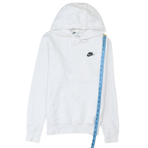 Stay effortlessly stylish and comfortable in this classic Nike women's white pullover hoodie, perfect for everyday wear. Designed with a clean, minimalist look and crafted from a soft cotton blend, this hoodie offers breathable comfort ideal for layering across all seasons. The crisp white colour gives it a modern and versatile appeal, making it easy to pair with jeans, leggings, or joggers whether you're heading to the gym, relaxing at home, or running errands. Featuring the iconic embroidered Nike logo on the chest, this hoodie delivers an instantly recognisable finish that’s a hallmark of quality and style. The adjustable drawstring hood ensures a personalised fit, helping to keep you warm during colder days, while the long sleeves and ribbed cuffs provide a snug, secure feel. The elastic hem adds to the flattering silhouette and keeps warmth in. A spacious kangaroo pocket on the front provides practicality for your essentials or to keep your hands cosy. The midweight fleece-lined interior makes this hoodie suitable for transitional weather while adding that extra touch of softness. With its regular fit, Nike’s superior craftsmanship, and sporty yet relaxed flair, this hoodie blends comfort and fashion seamlessly. Its easy-care fabric makes maintenance simple for daily wear. Ideal for casual occasions, gym sessions, or outdoor walks, it’s a wardrobe essential that brings together durability, functionality, and the timeless Nike aesthetic. Elevate your casualwear collection with this must-have piece that captures sporty sophistication at its finest.