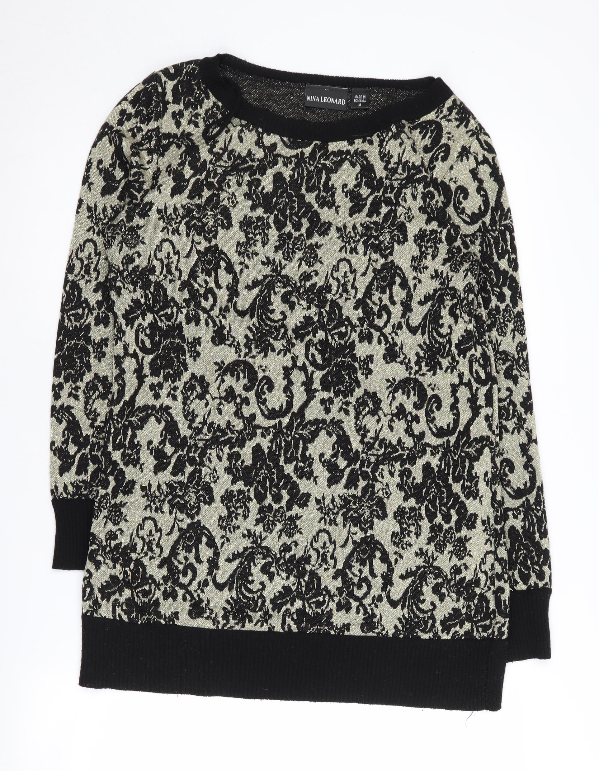 Elevate your wardrobe with this elegant Nina Leonard Women's Black Pullover Jumper, perfect for any casual or semi-formal occasion. This chic piece features a classic crew neck design, offering a timeless appeal that never goes out of fashion. With its intricate floral pattern, this jumper makes a statement while ensuring comfort and warmth. Crafted from a rich blend of acrylic, polyamide, polyester, and metallic fibres, it offers both style and durability. Slip into this beautifully knit pullover, and experience a blend of comfort and sophistication like never before. An essential addition to any fashion-forward woman's collection, its medium size ensures a great fit for a range of body types. Whether you're heading out for a coffee date or a day at work, this jumper adapts perfectly to your needs. Don't miss out on owning this versatile and fashion-forward piece, a true testament to Nina Leonard's commitment to quality and style.