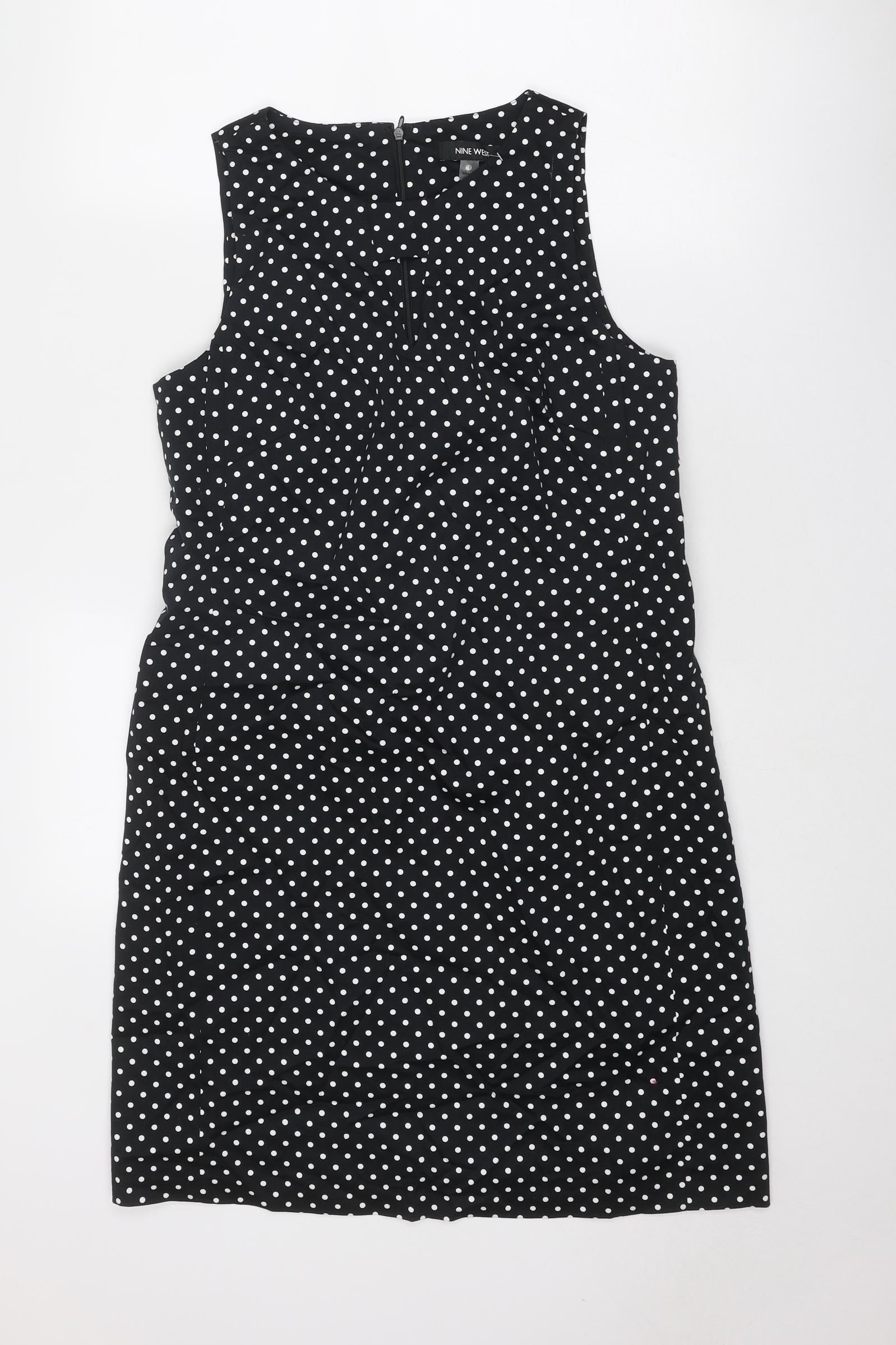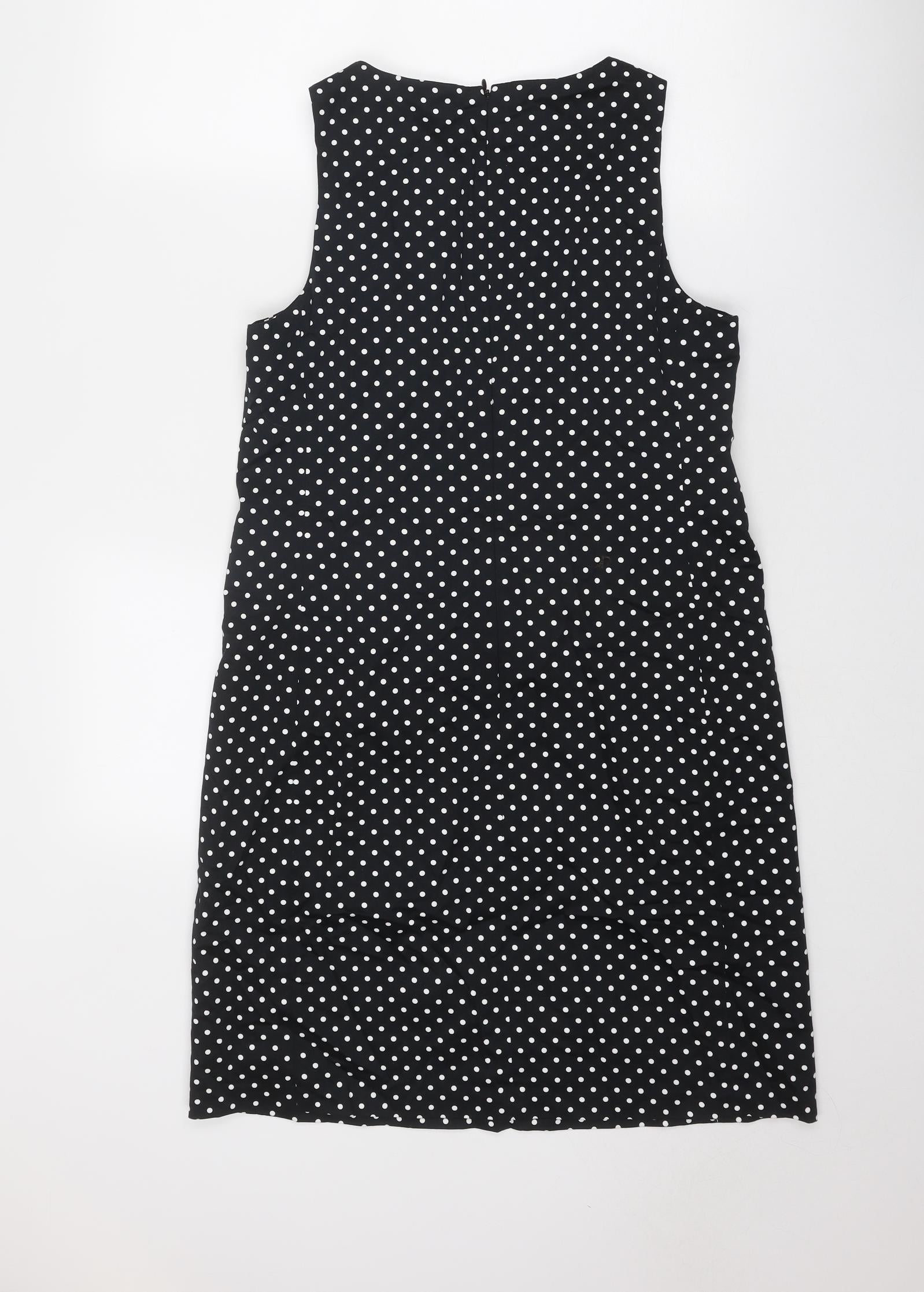 Womens Black Polka Dot Polyester Shift Size 8 Boat Neck Zip