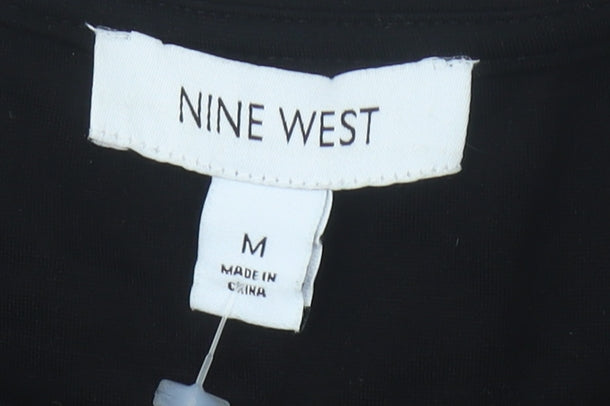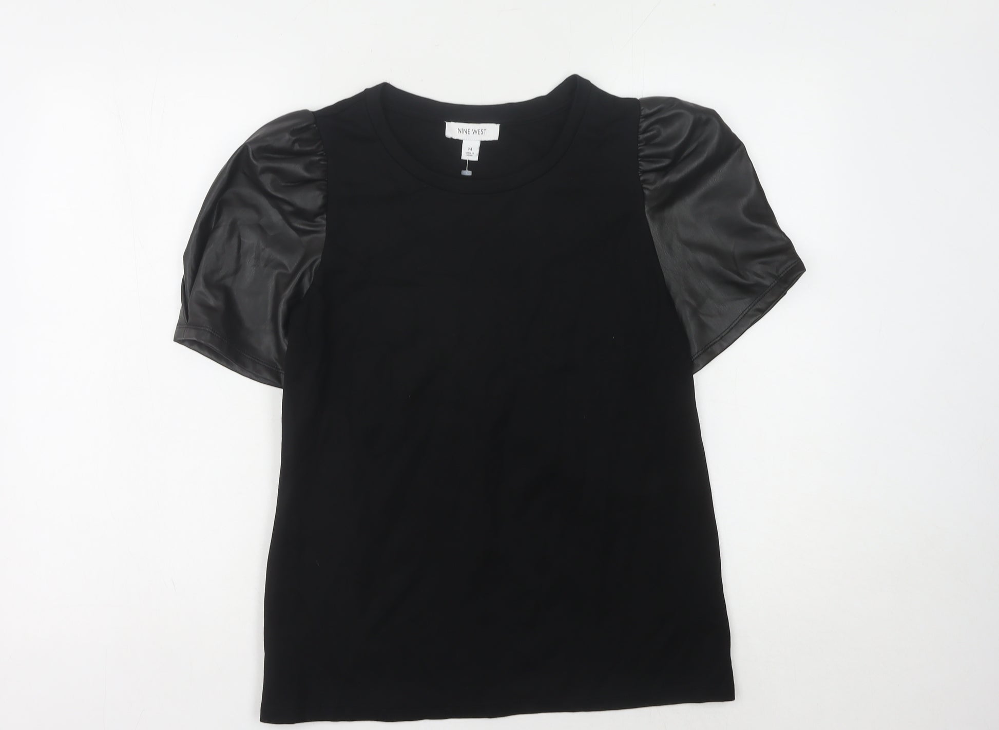 Elevate your wardrobe with this sophisticated Nine West women's top in classic black, crafted with a contemporary flair to suit any casual occasion. The medium-sized cut ensures a comfortable, regular fit that's perfect for day-to-day wear, making it an unmissable addition to your apparel collection. Its solid black hue exudes an elegant simplicity, complemented by the unique puff sleeves featuring a stylish faux leather touch, adding a modern twist to a timeless design. Constructed from a blend of high-quality materials including Viscose, Nylon, and Elastane, the top promises a soft feel against the skin, combined with a subtle stretch for freedom of movement. The round neckline is versatile, easy to pair with any necklace or accessories. Crafted for durability and easy maintenance, it is machine washable, offering practicality without compromising on style. This top can effortlessly transition from day to night—pair it with jeans for a laid-back day look, or dress it up with a skirt and heels for evening sophistication. With its understated design and fashionable accents, this Nine West top is perfect for those who appreciate subtle elegance with an edge.