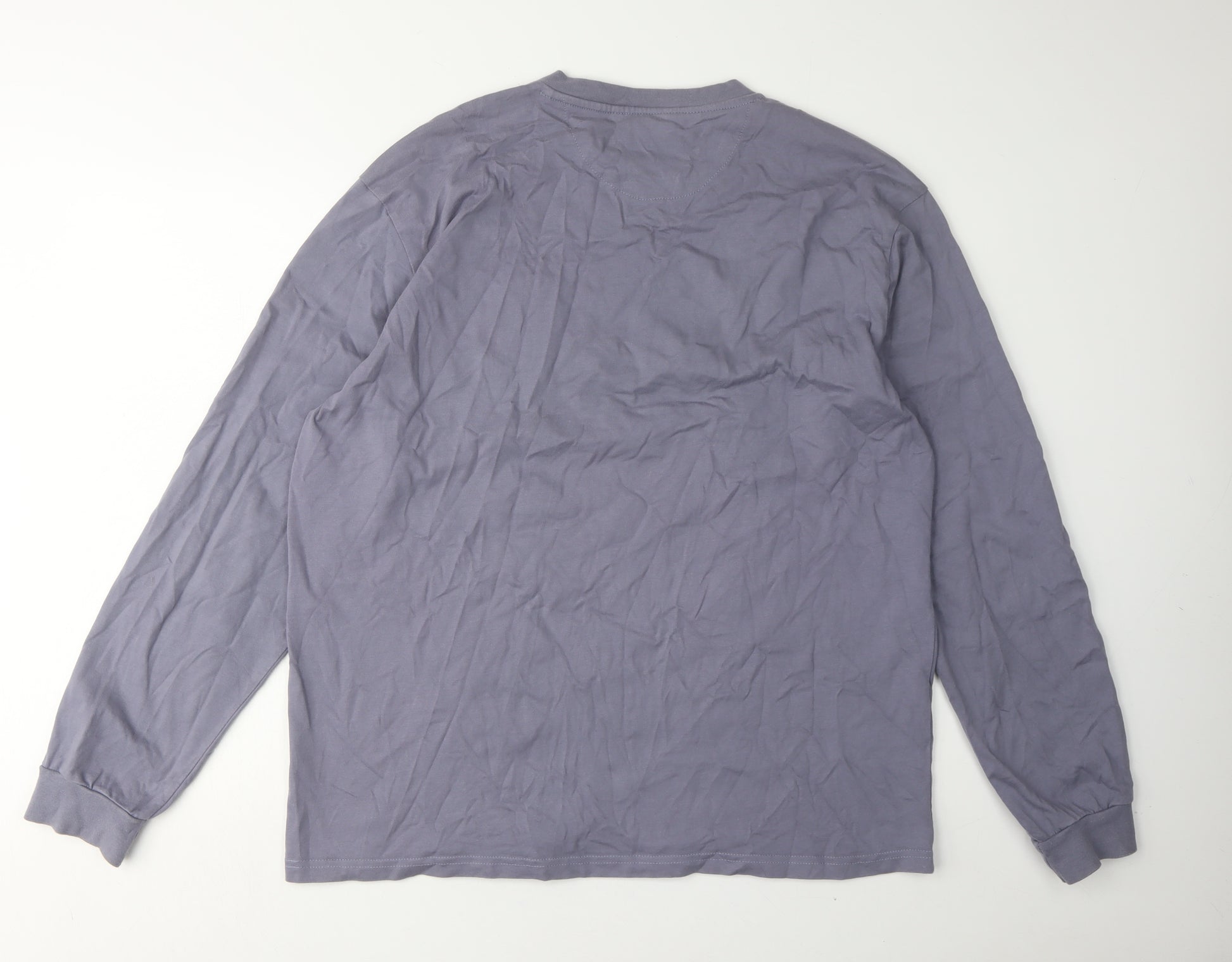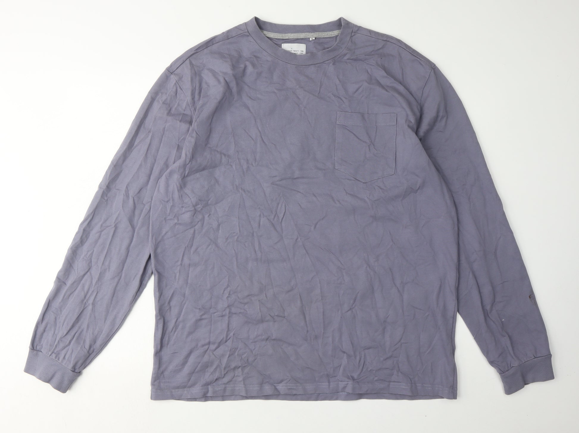 Elevate your casual wardrobe with this XL men's T-shirt from Nineteen.Twenty.Two Concept Store. Made from soft and breathable 100% cotton, this long sleeve top ensures comfort throughout the year. The solid purple hue offers versatility, making it easy to pair with various outfits. Whether dressed up with chinos or kept casual with denim, this T-shirt is a perfect addition to any man's collection. Featuring a crew neck design, it promises a classic silhouette that never goes out of style. Please note, there is a slight stain, which is reflected in the price. Embrace both style and comfort with this essential fashion piece, expertly crafted for those who appreciate quality and timeless design.