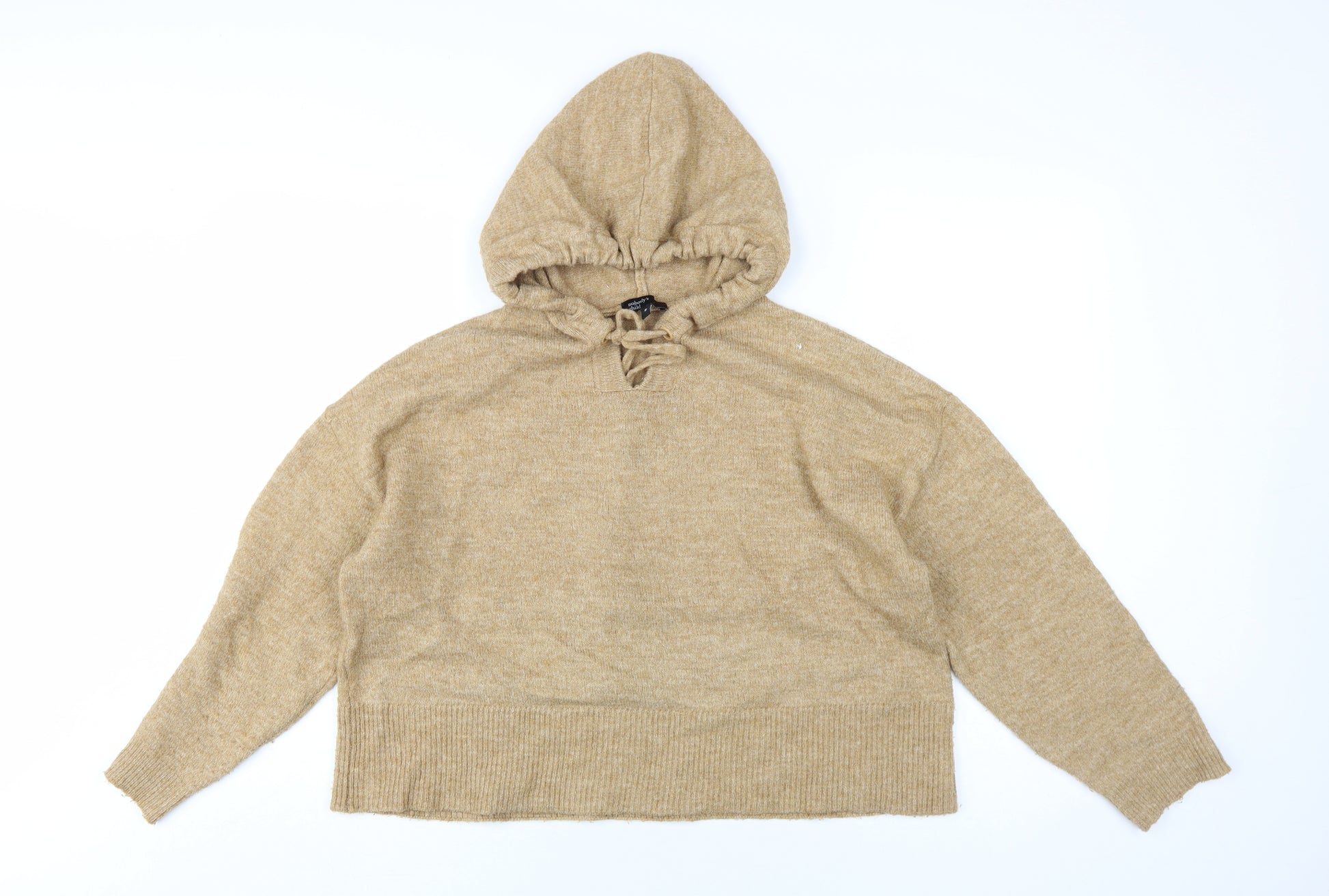 Step into comfort and style with this elegant pullover hoodie from Nobody's Child. Crafted in a chic beige hue, this women's knit hoodie seamlessly blends fashion with functionality. Made from a soft and breathable blend of acrylic, polyester, and elastane, it promises lightweight warmth and flexibility, making it an ideal choice for both autumn and winter seasons. The hoodie features a convenient drawstring closure, allowing for adjustable comfort and a secure fit. Its classic crew neck design and regular fit ensure a flattering silhouette, perfect for casual outings or cozy days at home. Whether you're layering this pullover for a brisk evening or making a style statement on its own, its understated elegance is sure to turn heads. With long sleeves to provide that extra layer of warmth, this hoodie is perfect for those who value both comfort and style. Add this versatile piece to your wardrobe and experience the epitome of casual chic. Pair it with your favourite jeans or leggings for a laid-back yet stylish ensemble. Its excellent condition reflects minimal signs of wear, making it a great addition to your collection. Grab this stylish hoodie now and embrace the perfect blend of comfort and elegance.