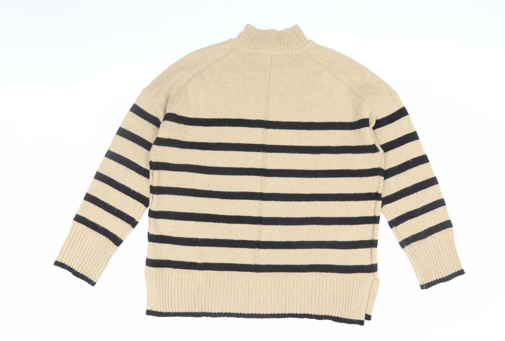 Add this chic and versatile Nobody's Child women's beige pullover jumper to your wardrobe for a touch of timeless style. Crafted in a regular fit with a mock neck, this jumper provides both comfort and a flattering silhouette. Showcasing a classic striped pattern in a beige hue, it offers a stylish twist for casual outings. The jumper is made from a quality blend of 62% cotton and 38% polyester, ensuring it's both breathable and durable for seasons to come. Its long raglan sleeves provide an effortlessly relaxed yet polished look. Designed for everyday wear, it is machine washable for easy care, making it a practical choice for the modern woman. Ideal for autumn and winter, this jumper can be paired with your favourite jeans or a skirt for an effortlessly stylish ensemble. Perfect for casual or laid-back occasions, it's a must-have addition to your knitwear collection.