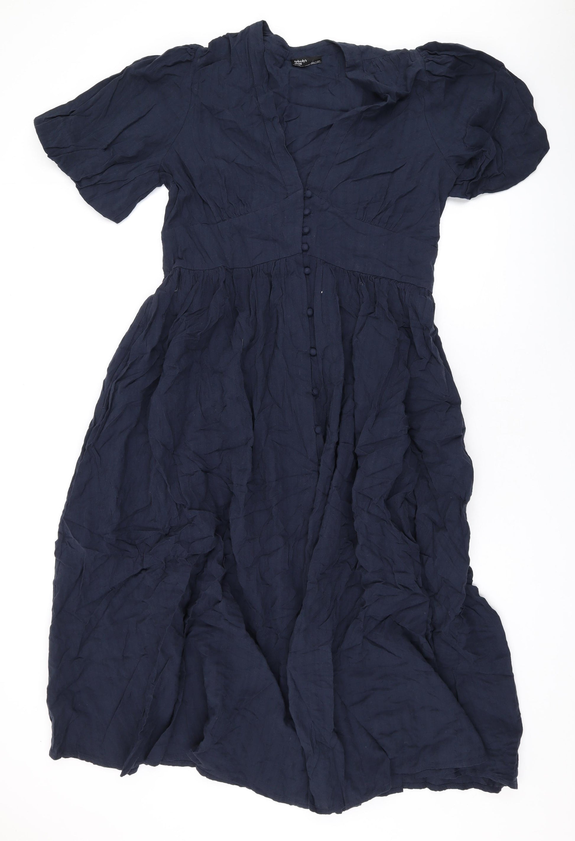 Womens Blue Cotton Maxi Size 14 V-Neck Button