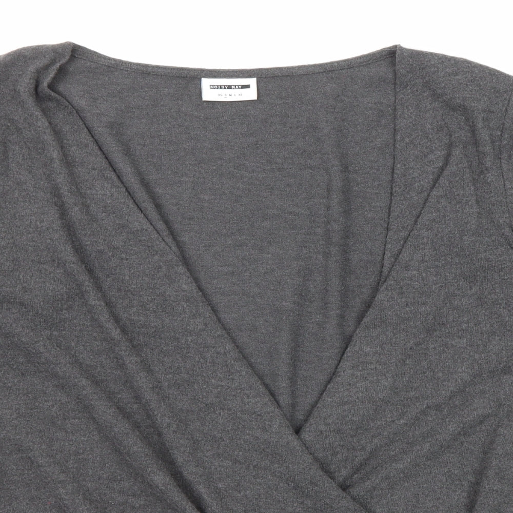 Womens Grey V-Neck Polyester Pullover Jumper Size S Pullover - Wrap Front Detail