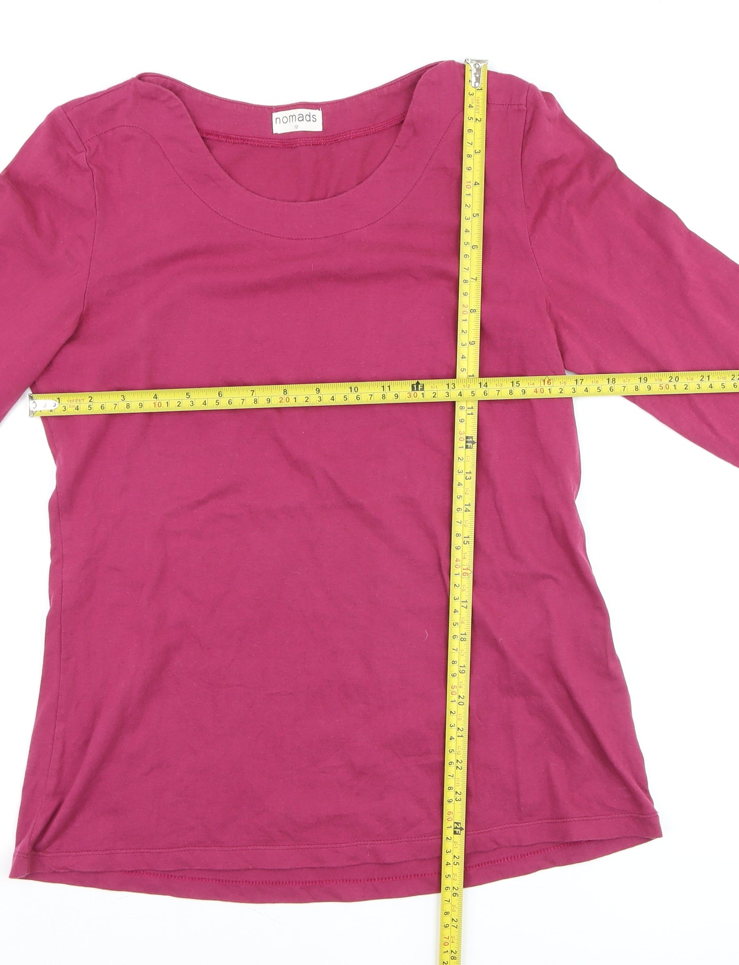This Nomads women’s pink long sleeve T-shirt combines everyday comfort with simple, sustainable style. Made from 100% organic cotton, it offers a soft and breathable feel that’s perfect for all-day wear. The rich pink tone brings a warm, vibrant touch to casual outfits, while the regular fit and classic scoop neckline add timeless appeal for effortless pairing with jeans, skirts, or layered looks. The fabric’s lightweight jersey texture provides ease of movement and comfort, ensuring it becomes a staple in any season. Designed with a pullover closure and classic fitted sleeves, this top embraces minimalism without compromising quality. Nomads’ commitment to ethical and organic materials enhances its everyday practicality, making it a brilliant choice for those who value eco-friendly fashion with a contemporary edge. Suitable for spring, summer, or layering through autumn, it transitions smoothly between casual outings, relaxed weekends, or work-from-home wear. Machine washable for convenience, this top retains softness and colour with each wash, ensuring longevity and wearability. With its clean design and breathable finish, the Nomads long sleeve T-shirt encapsulates laid-back elegance with an artisanal charm. A reliable essential that pairs seamlessly with denim or trousers, this piece exemplifies comfort-conscious sophistication, making it the ideal sustainable addition to any woman’s wardrobe. In excellent condition with only light signs of previous wear, this top presents beautifully and is offered at great value compared to new alternatives. Whether worn alone or under layers, it’s a flattering, natural-fibre piece you’ll reach for again and again.