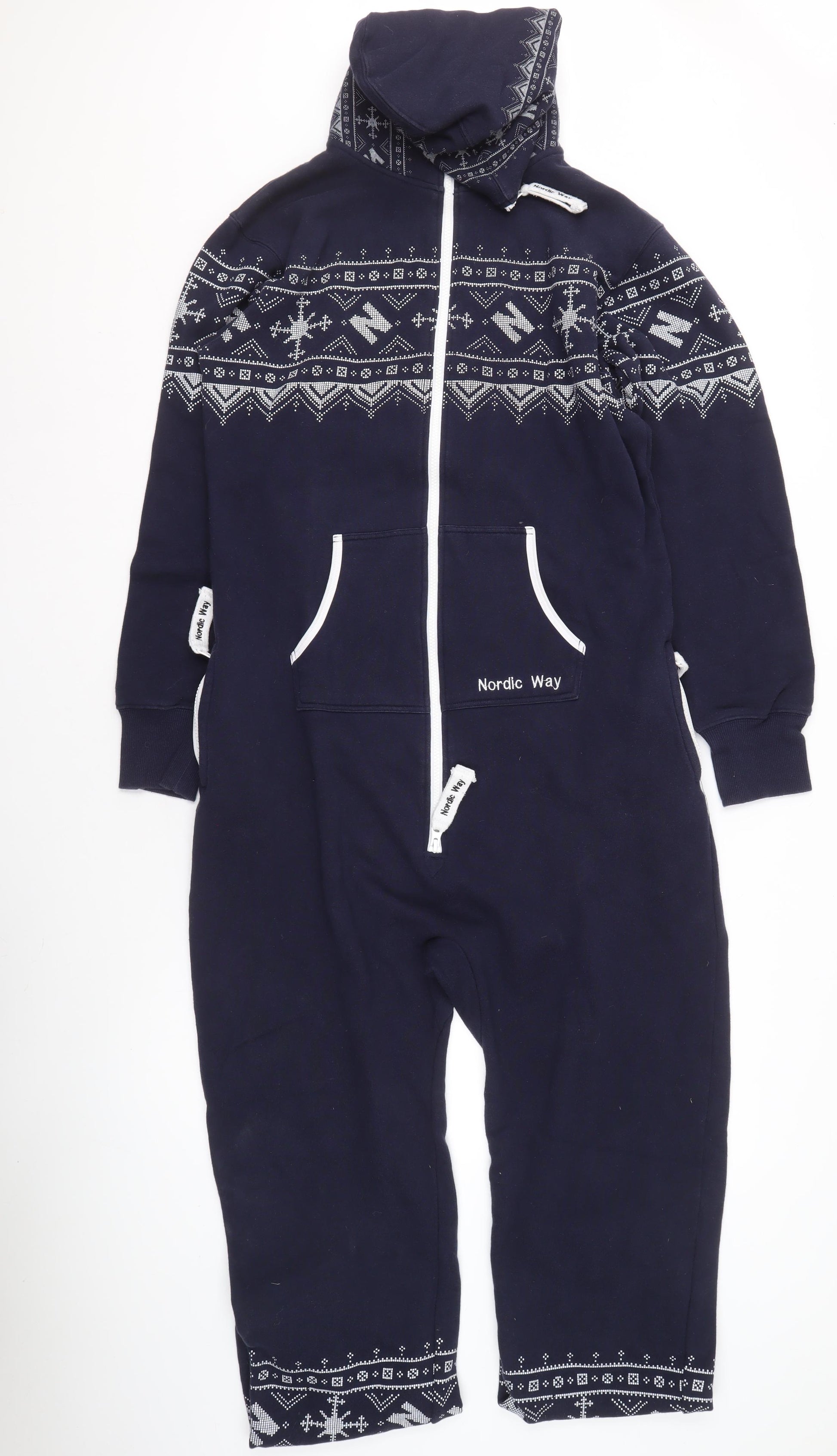 Get cosy and comfortable in this Nordic Way men’s one-piece fleece nightwear, perfect for bringing warmth and style to your evenings at home. Crafted from a soft blend of 80% cotton and 20% polyester, this navy blue onesie features a classic Fair Isle pattern across the chest and cuffs, adding a subtle touch of Nordic-inspired charm. The lightweight fleece fabric ensures a snug yet breathable fit, making it ideal for lounging during chilly winter nights. Designed for practicality and comfort, this onesie includes a full front zip closure for easy wear, a hood for extra warmth, and functional pockets for convenience. The ribbed cuffs and reinforced seams provide a secure fit and lasting durability, while the embroidered Nordic Way logo adds a premium finish. The medium size is an excellent fit for regular builds, offering relaxed comfort without restricting movement. Machine washable for easy care, it’s a great low-maintenance piece for everyday relaxation. Whether you’re winding down after a long day, enjoying a lazy weekend, or seeking the perfect gift for a loved one, this Nordic Way onesie is an all-around favourite. Its timeless blue tone and classic winter pattern make it a stylish choice for men who value both comfort and design. Enjoy your downtime in luxurious softness and warmth—perfect for staying comfortable throughout the colder months. This high-quality fleece onesie delivers the ideal balance of practicality and relaxation, ensuring you look as good as you feel every time you wear it.
