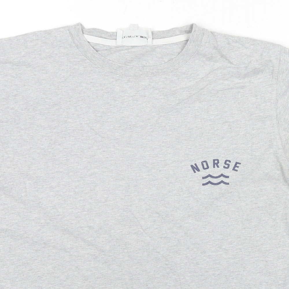 Womens Grey Cotton Basic T-Shirt Size M Round Neck - Logo