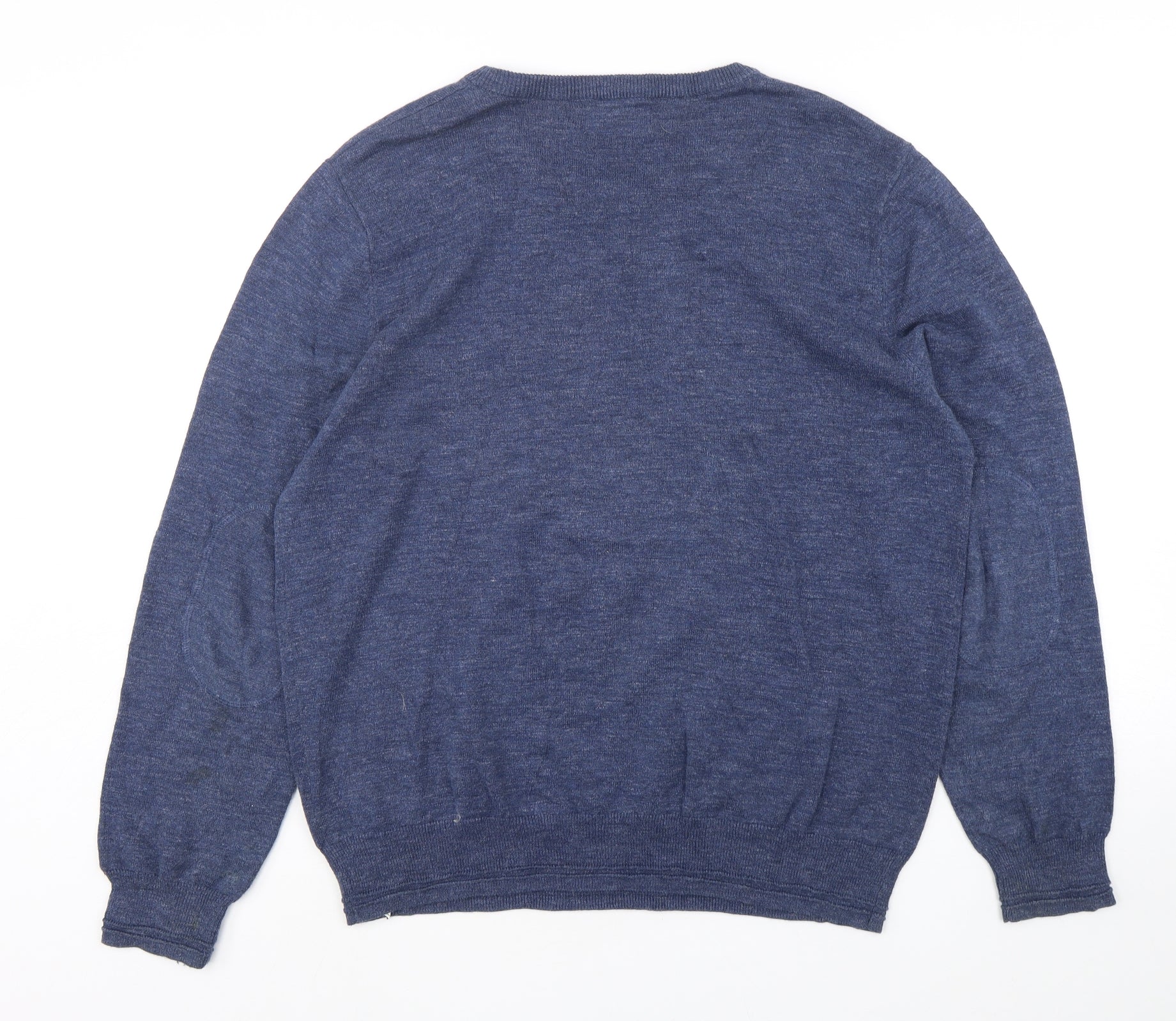 Mens Blue Round Neck Cotton Pullover Jumper Size L