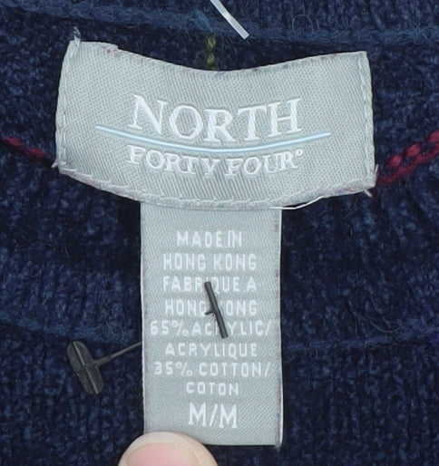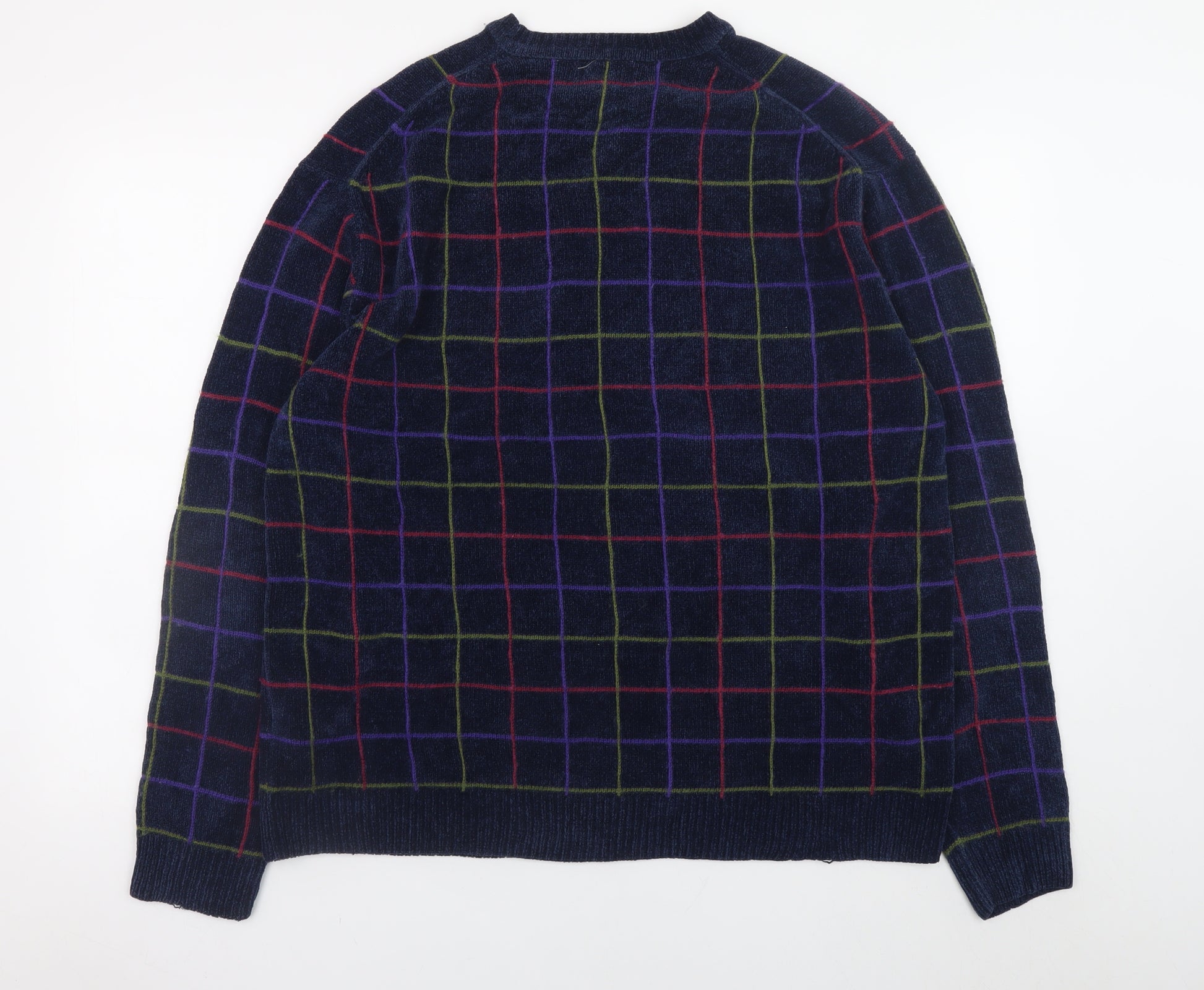 Step into effortless style with this North Forty Four men's crew neck pullover jumper, perfect for adding character and warmth to your casual wardrobe. Crafted from a blend of 65% acrylic and 35% cotton, this jumper offers a comfortable and breathable knit that’s ideal for layering during the cooler autumn and winter months. The classic check pattern in rich tones of blue, red, green, and purple creates a versatile and timeless look suitable for any casual outing or relaxed weekend wear. Designed with ribbed cuffs, collar, and hem, it ensures a cosy fit that helps to retain shape and comfort throughout the day. The medium size provides a comfortable regular fit that flatters without feeling restrictive, making it a dependable go-to piece for everyday wear. Made with attention to detail, this jumper embodies a touch of heritage appeal while maintaining a modern edge. Its all-season practicality and easy-care machine washable fabric make it both stylish and functional for regular use. Whether you pair it with jeans for a weekend stroll or layer it over a collared shirt for a smart-casual ensemble, this North Forty Four jumper effortlessly combines warmth, comfort, and understated charm. In excellent pre-owned condition, showing no visible flaws or signs of excessive wear, it reflects quality craftsmanship designed to last. Enhance your wardrobe with this versatile knitwear piece that merges timeless design with long-lasting comfort. For those who appreciate classic style blended with everyday ease, this check pattern blue jumper is a must-have addition to your collection, ready to elevate your seasonal looks with refined simplicity and relaxed sophistication.