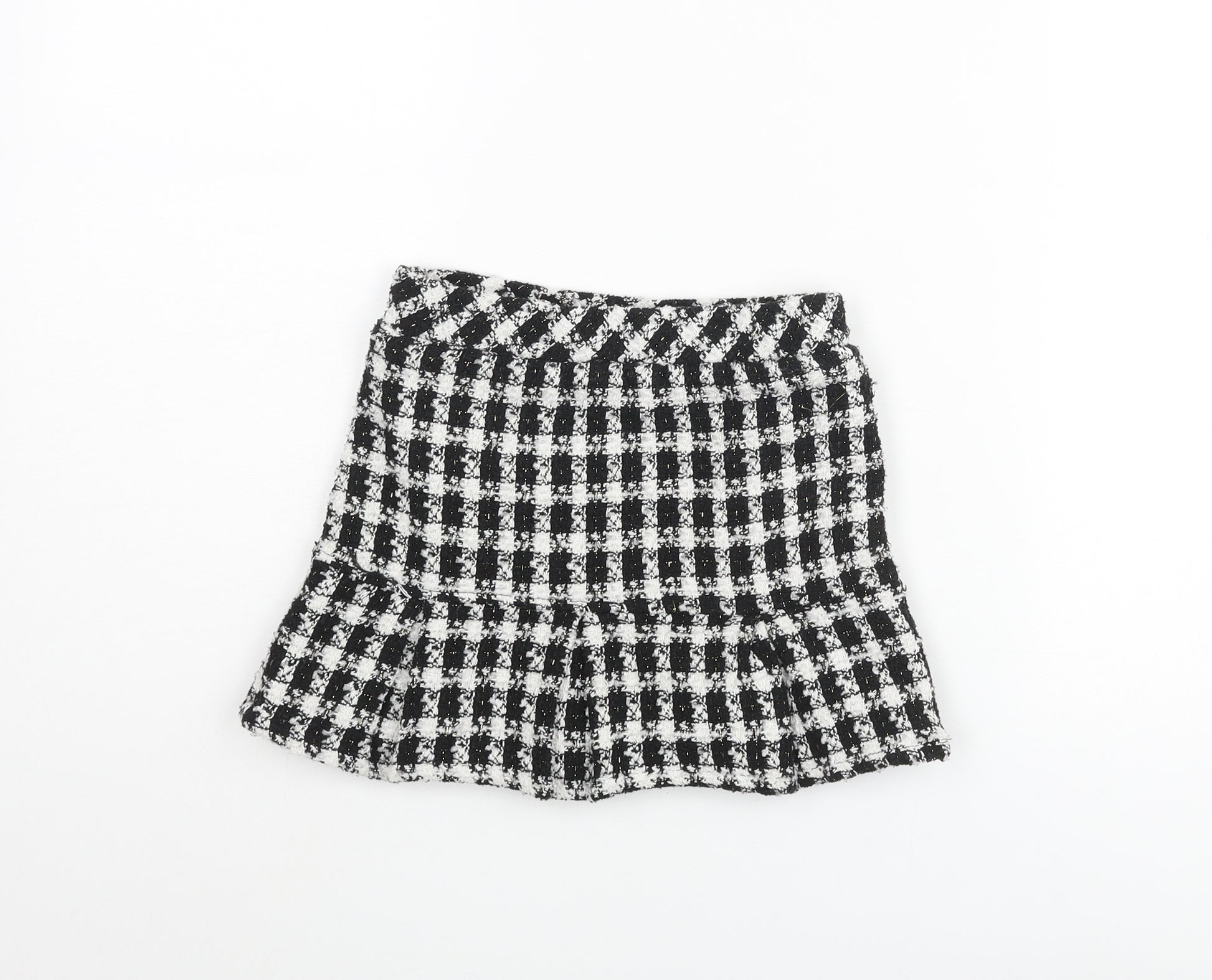 Girls Black Houndstooth Polyester Pleated Skirt Size 5 Years Regular Pull On
