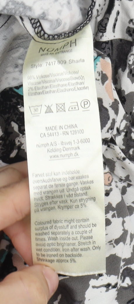 Explore a modern twist with the Nümph collared dress, featuring a vibrant abstract pattern in a multitude of colours. This sleeveless piece is woven with a blend of 98% viscose and 2% elastane, ensuring a comfortable fit and a stunning drape. Ideal for women looking to express their style through a statement piece. The dress features a button closure, making it easy to wear. Machine washable for effortless care, this dress promises versatility—whether it's for a casual outing or a relaxed workday. Available in size 6, this wardrobe essential pairs seamlessly with your favourite accessories and footwear for a chic look.