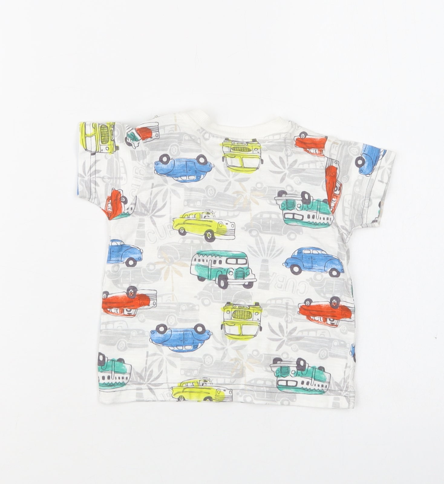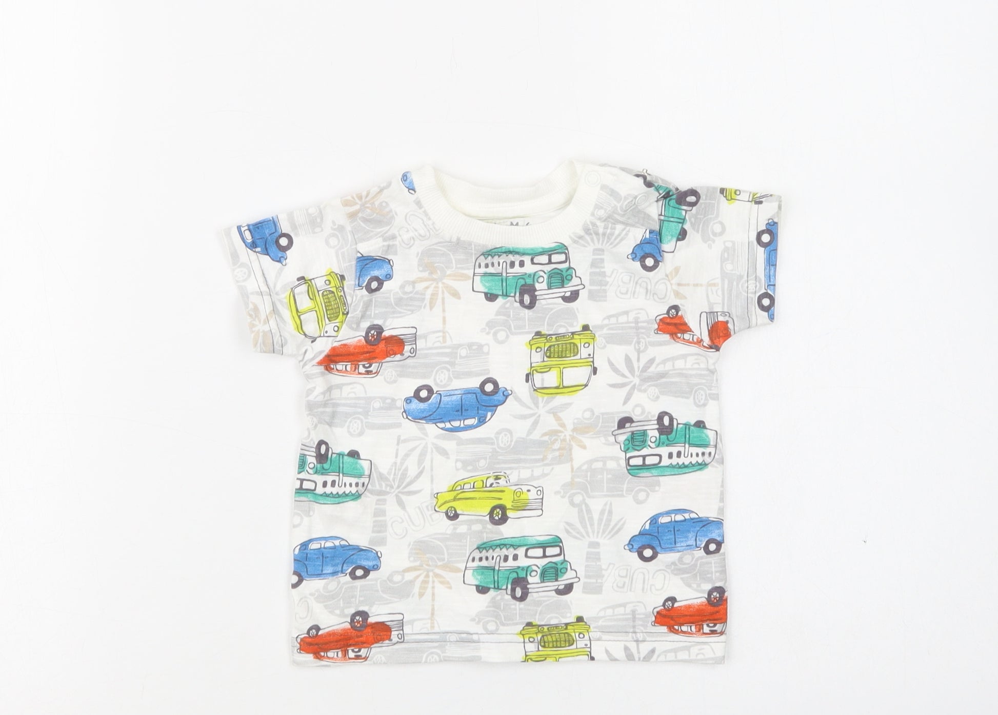 Baby Multicoloured Geometric Cotton Basic T-Shirt Size 6-9 Months Crew Neck Snap - Car Print