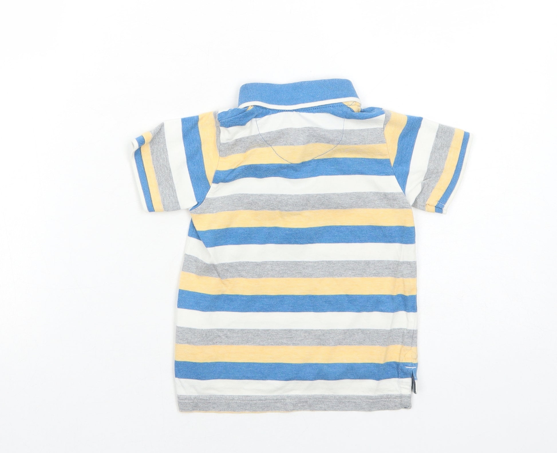 Boys Blue Striped Cotton Basic Polo Size 12-18 Months Collared Button - Dinosaur