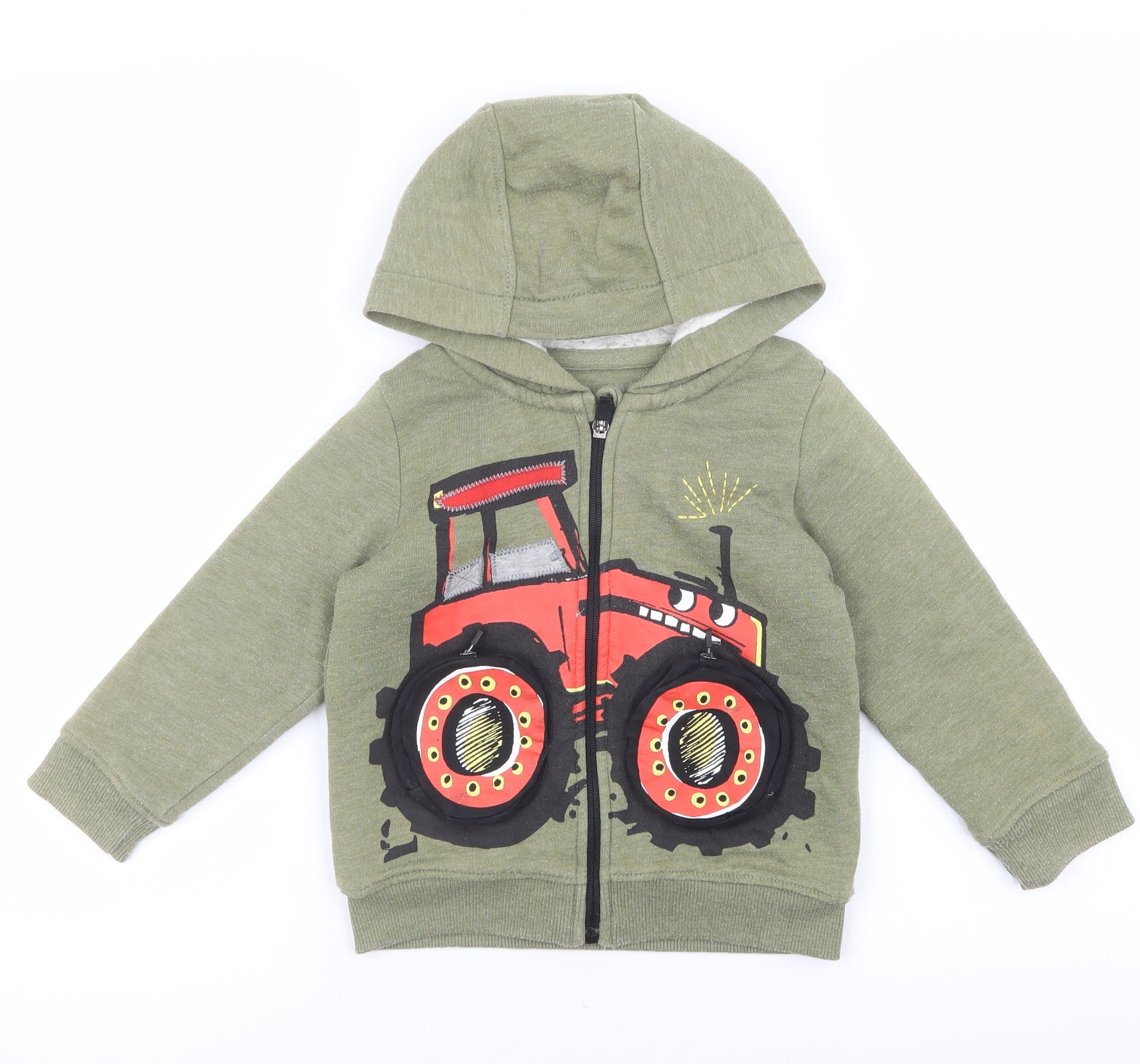 Boys Green Cotton Full Zip Hoodie Size 2-3 Years - Tractor