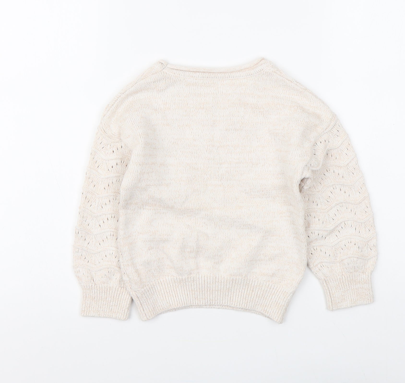 Girls Beige Round Neck Cotton Pullover Jumper Size 4-5 Years Pullover