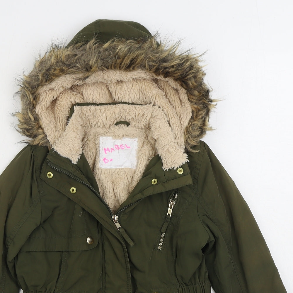 F&F Girls Green 8-9 Years Long Hooded Puffer Coat Winter Jacket