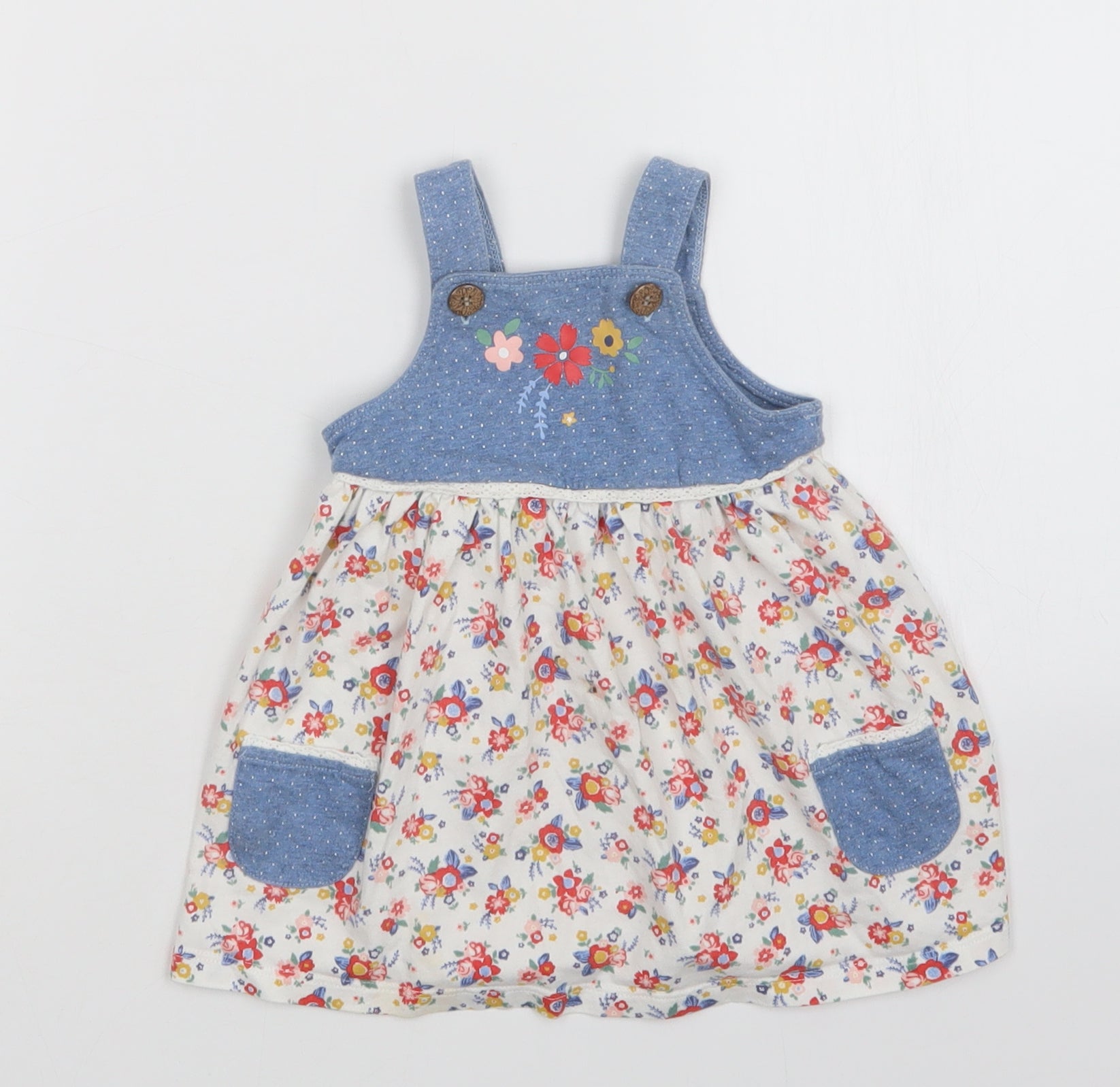 Girls Multicoloured Floral Pinafore/Dungaree Dress Size 3-6 Months