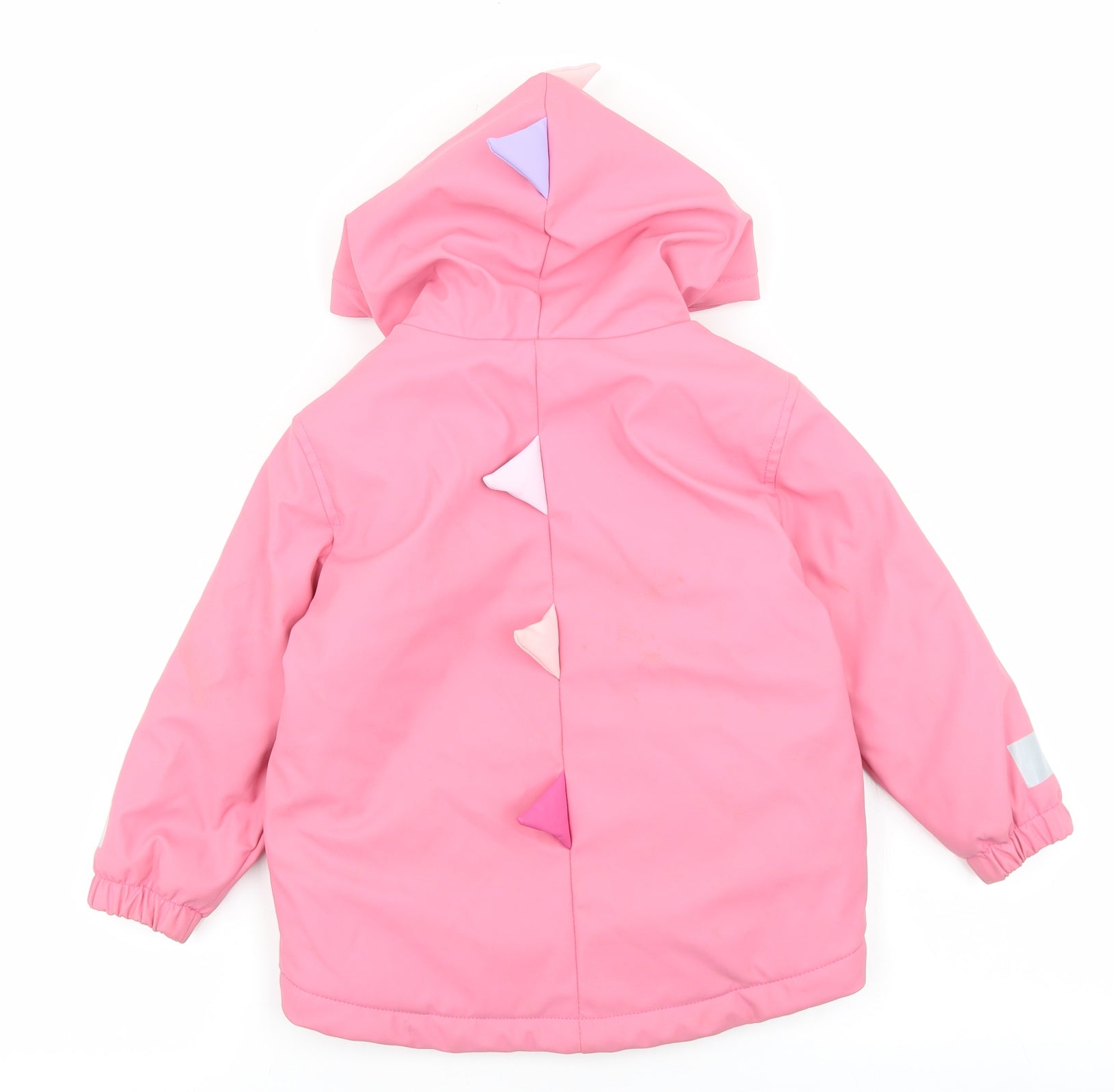 Girls Pink Rain Coat Coat Size 2-3 Years Zip - Dinosaur