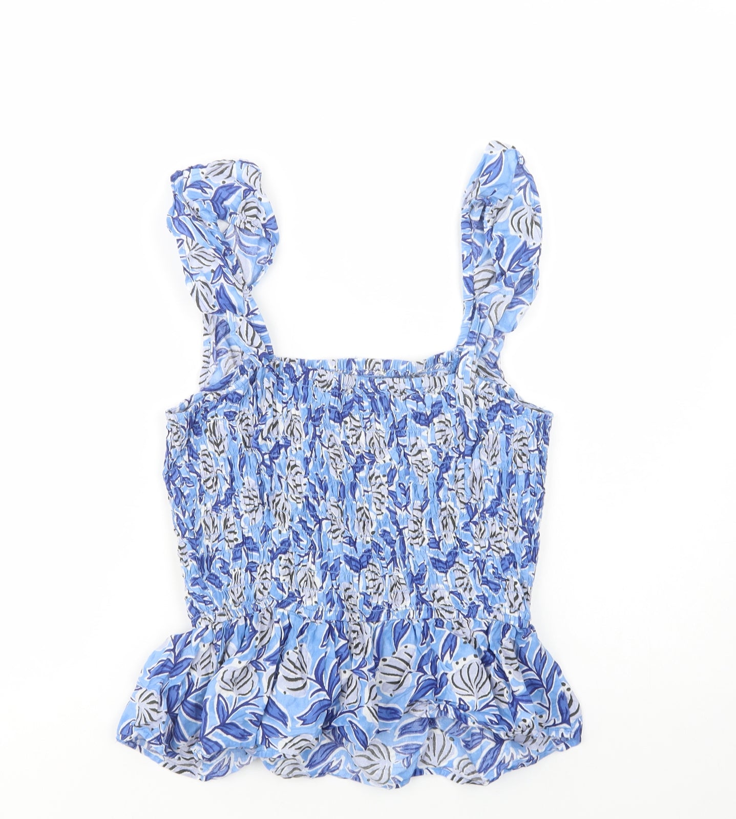 Womens Blue Floral Cotton Basic Blouse Size 14 Square Neck