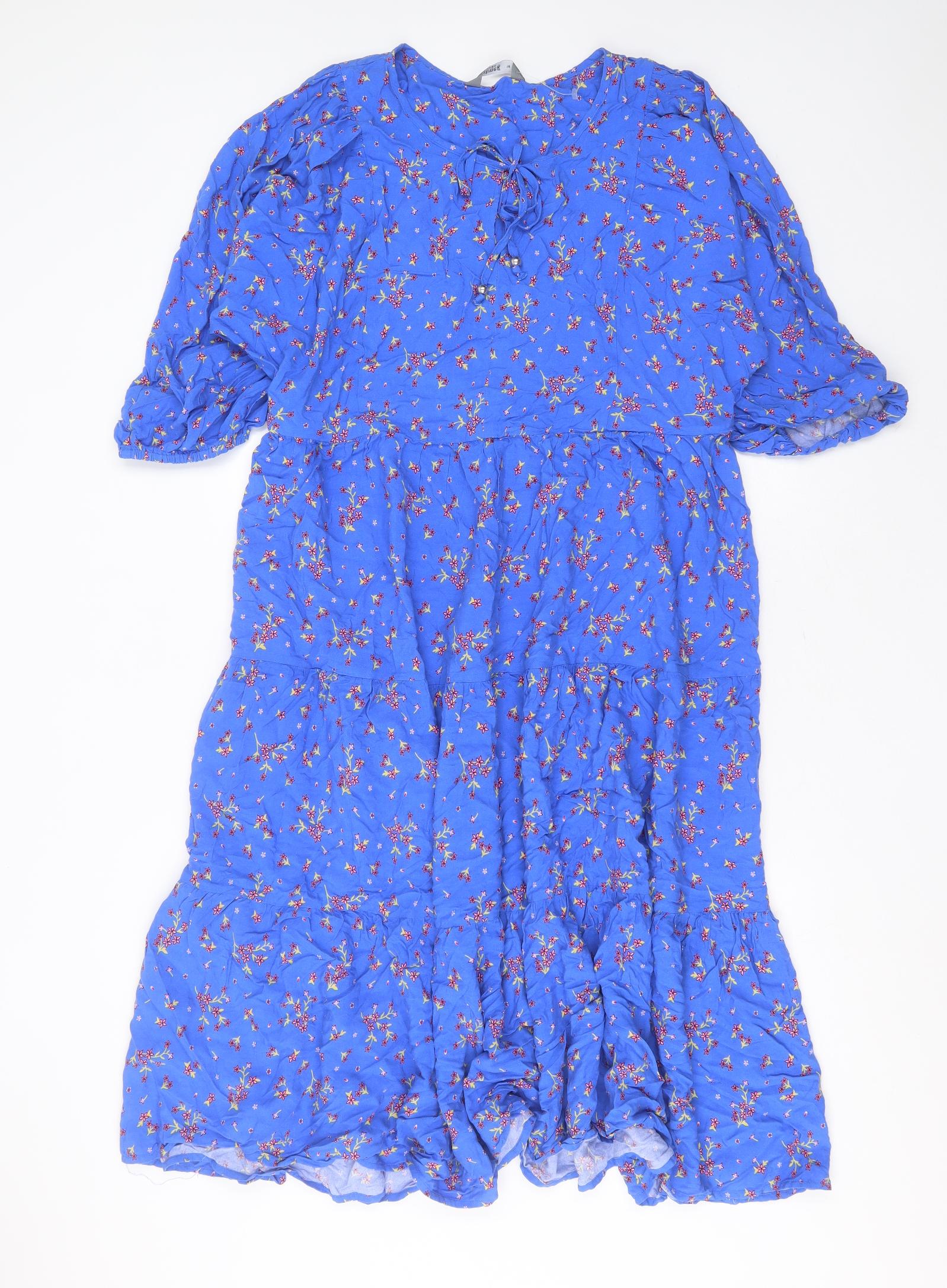 Womens Blue Floral Viscose Maxi Size 16 Round Neck