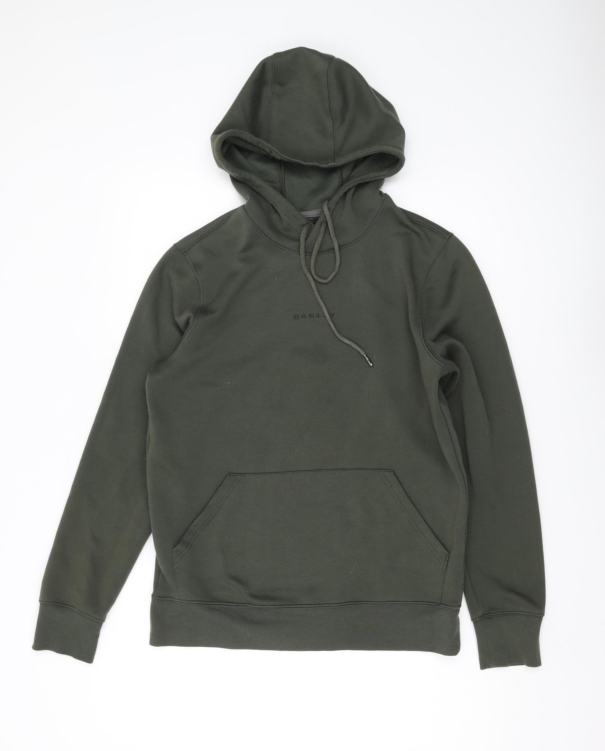 Stay warm and stylish with this Oakley men's green pullover hoodie, perfect for the upcoming colder seasons. Crafted from a soft fleece blend of polyester, viscose, and elastane, this hoodie offers both durability and comfort. Its regular fit and medium size ensure it's snug yet flexible, making it an ideal choice for casual outings and layering during autumn and winter months. The design features a classic crew neck and long sleeves, adding to its effortless charm. With a logo accent and practical drawstring closure, it enhances the hoodie’s fashionable yet functional appeal. The kangaroo pocket offers convenience, while the hooded feature ensures extra warmth when needed. Whether you're heading out for a casual walk or lounging at home, this hoodie promises to be a versatile addition to your wardrobe. Its machine washable care makes it an easy-to-maintain garment, reflecting Oakley’s commitment to practicality. Elevate your casual wear collection with this simple yet chic hoodie.