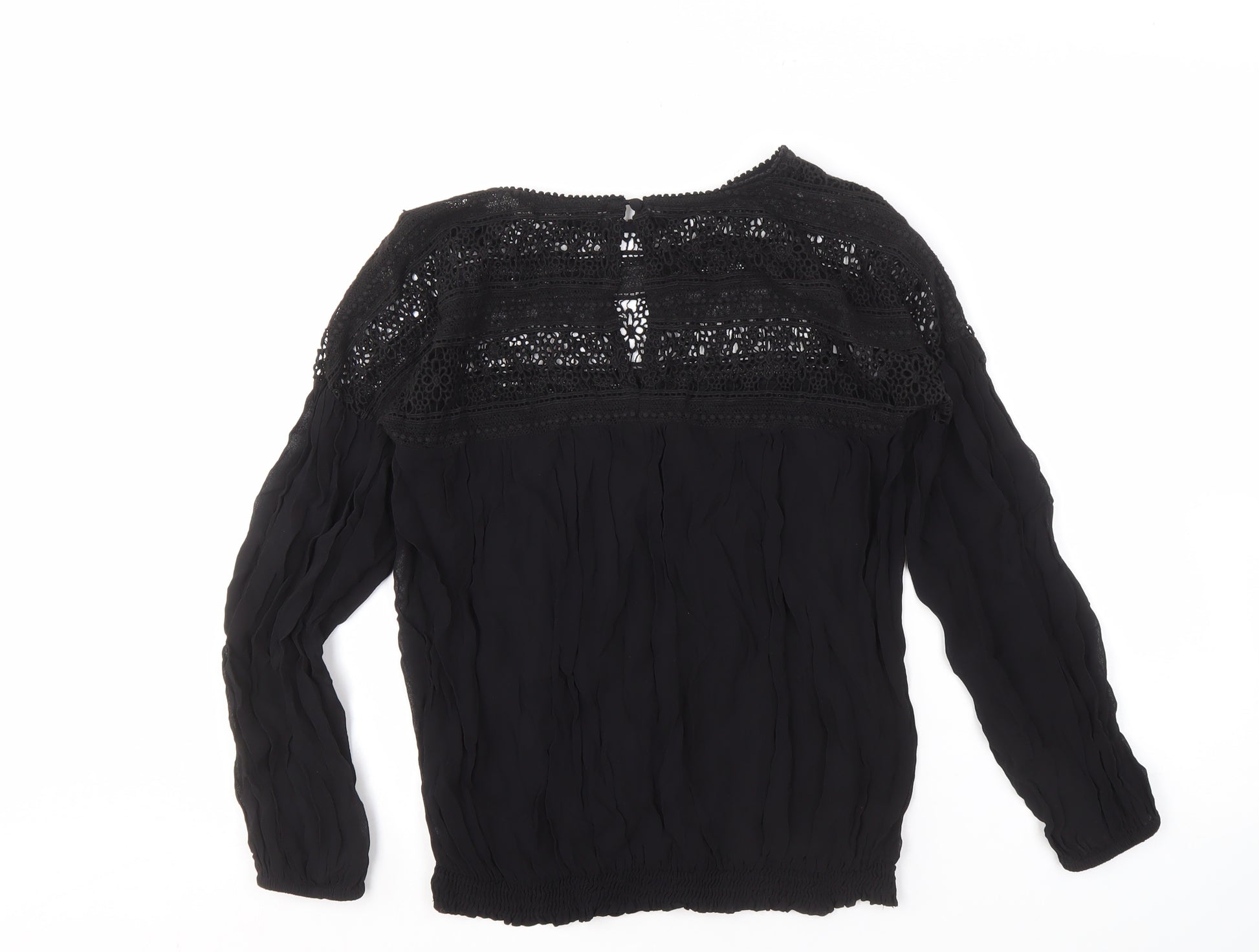 Black Crochet Women's Blouse Size 8 Long Sleeve