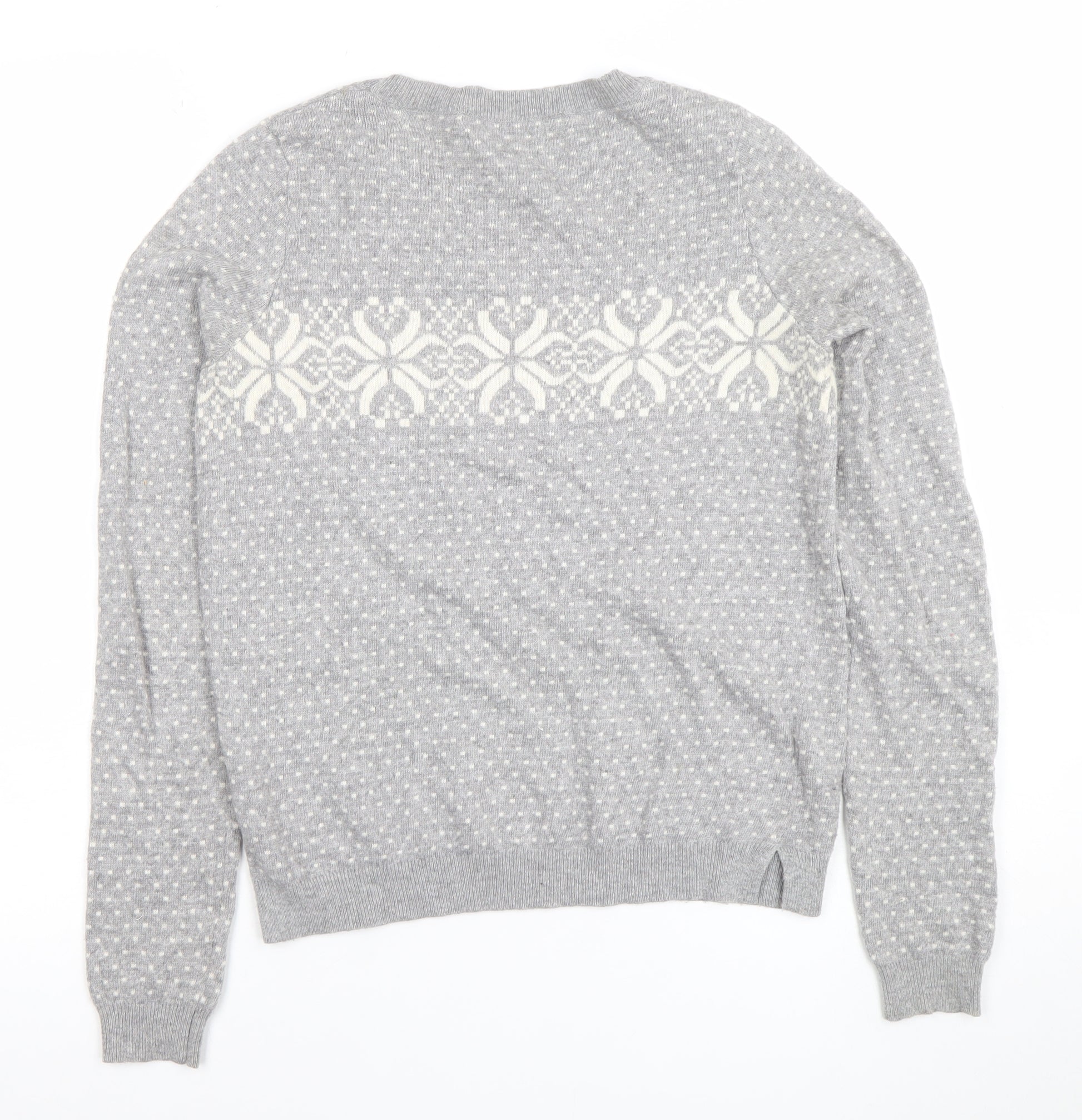 Girls Grey XS Fair Isle Crew Neck Pullover Jumper Winter Knit