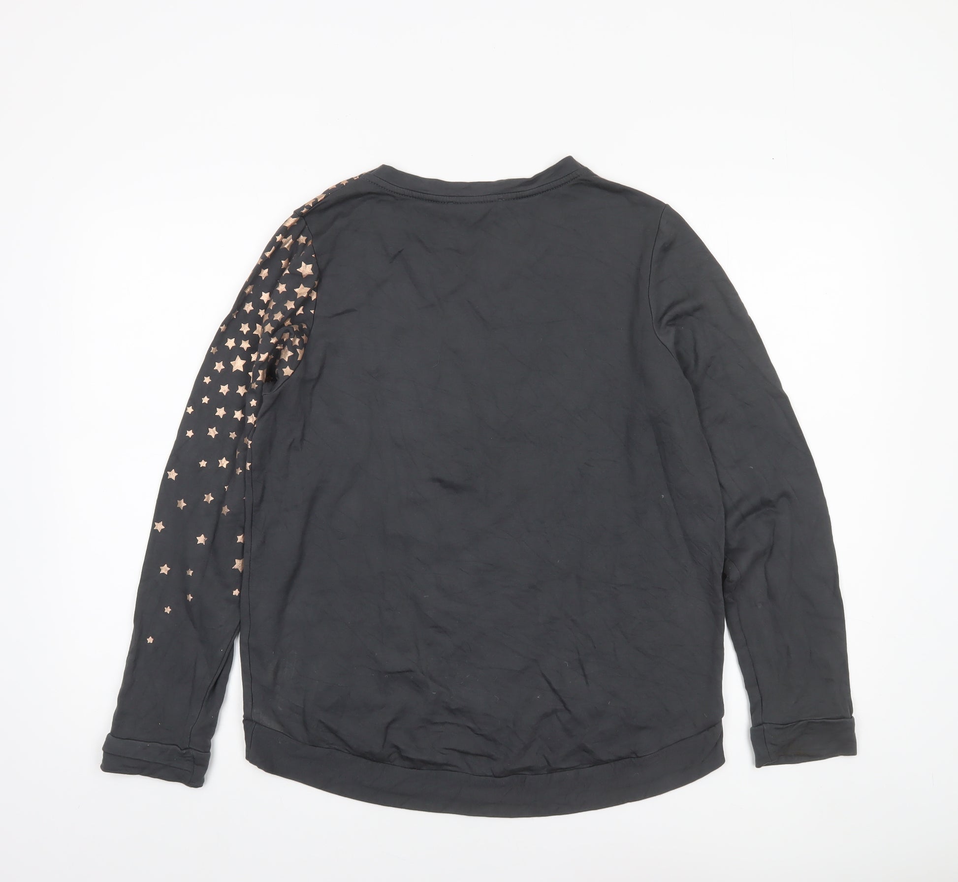 Women Black Star Embellished Pullover Sweatshirt Size M Viscose Blend