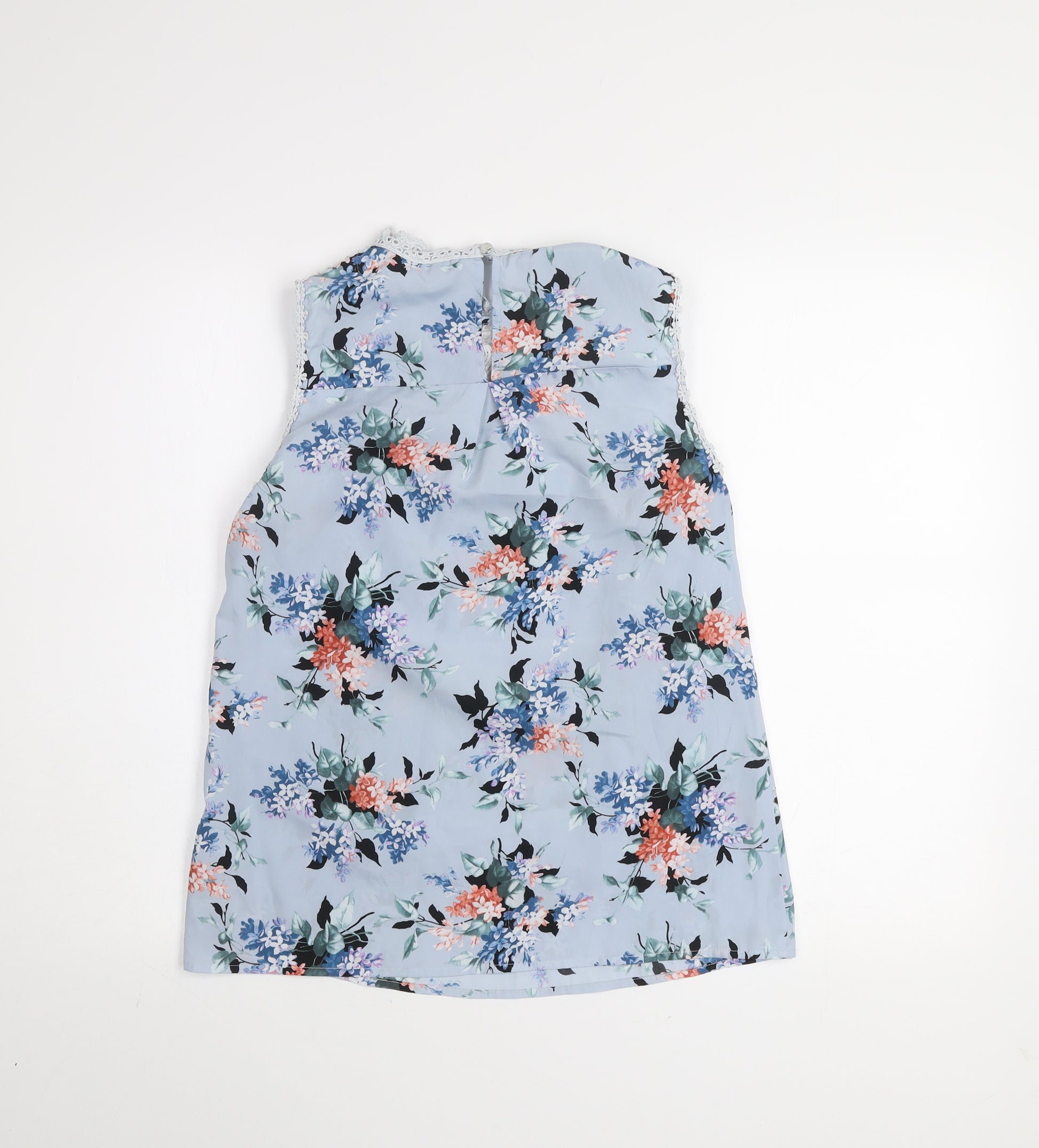 Women Blue Floral Lace Sleeveless Blouse Size 10