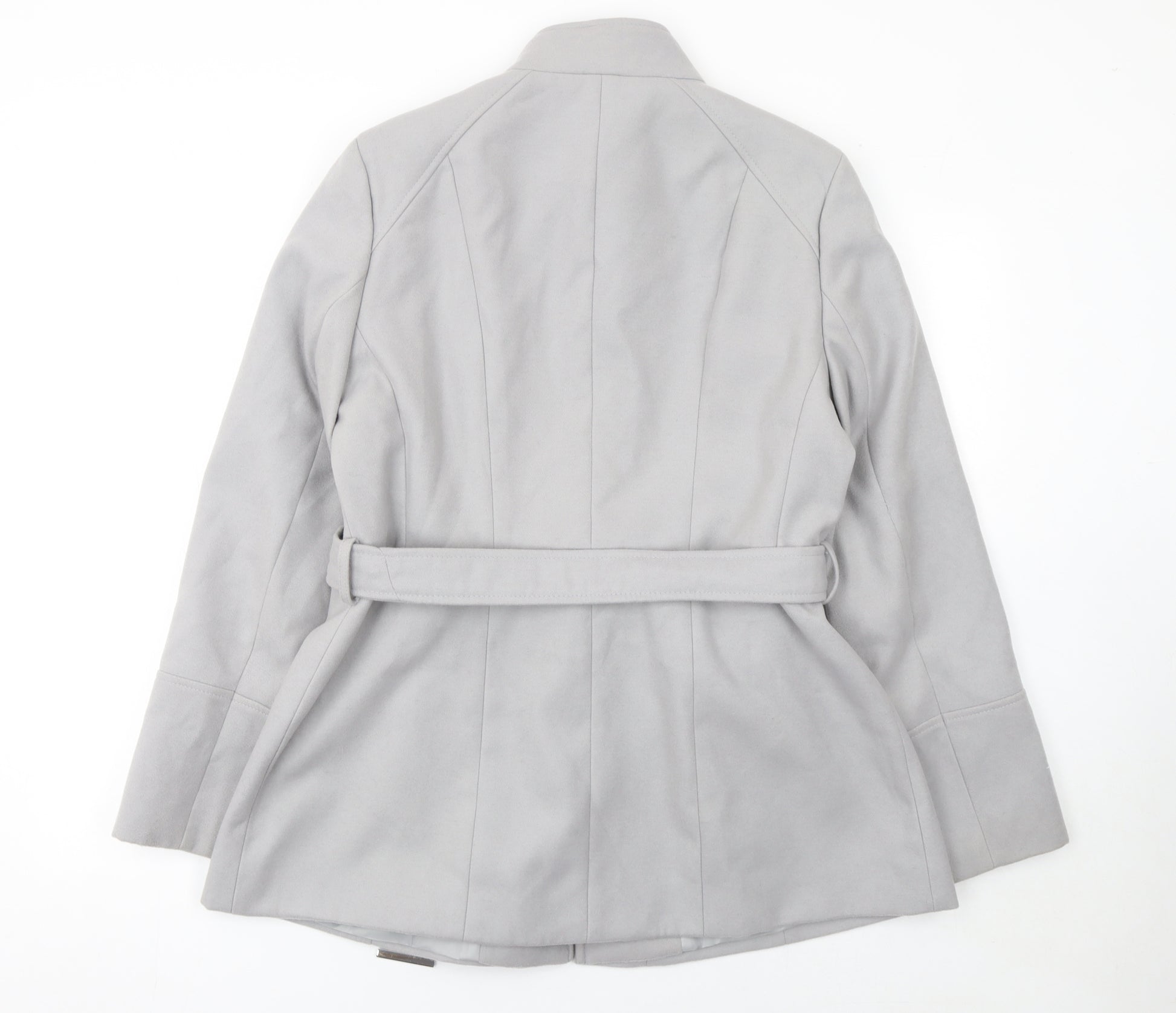 Women Grey Belted Short Coat L Classic Lined Polyester Blend