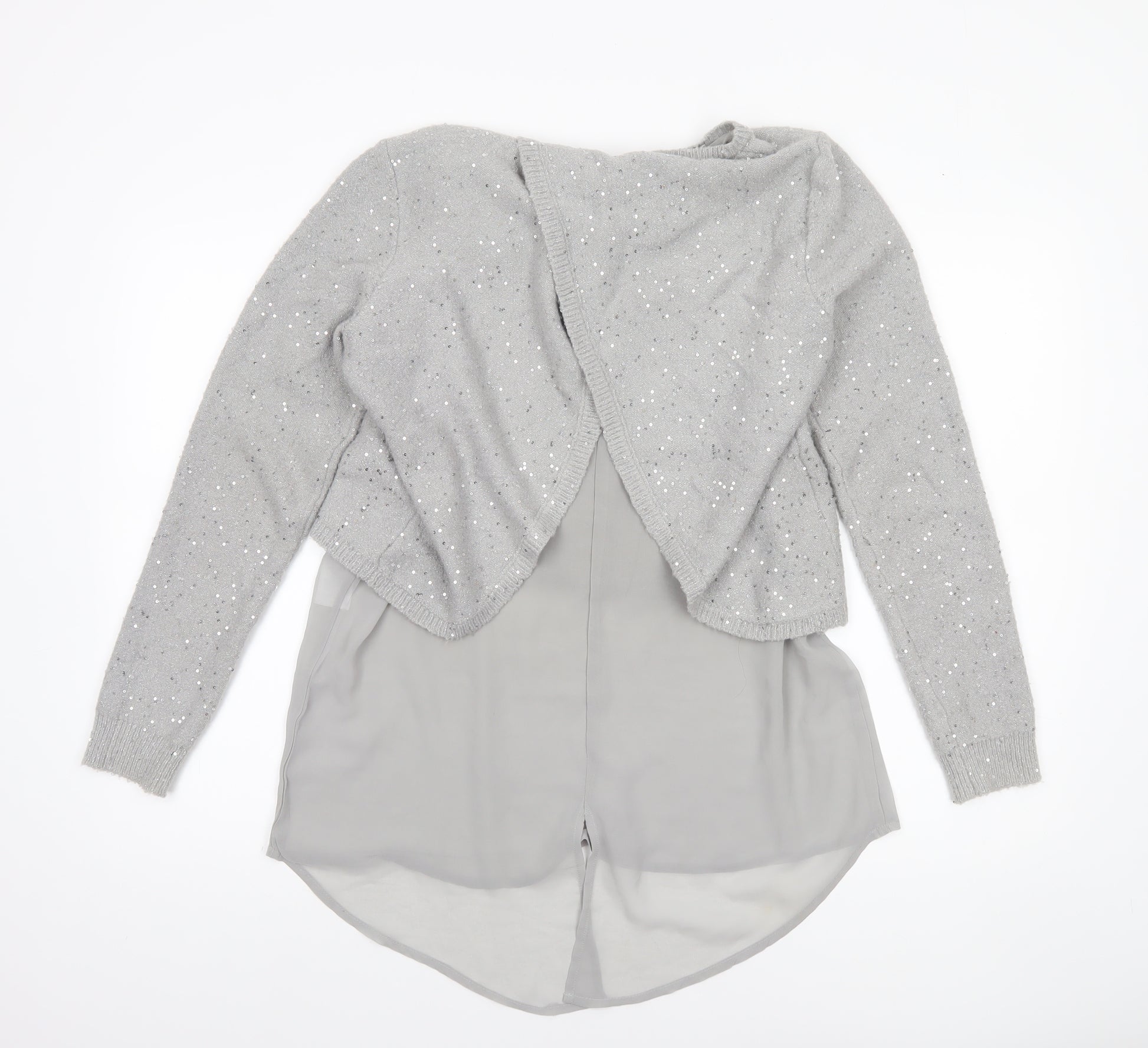 Women Grey Sequin Layered Pullover Jumper Size M