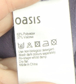 Add a touch of effortless style to your everyday wardrobe with this lovely purple basic T-shirt from Oasis. Crafted with a soft and breathable jersey fabric made from a comfortable blend of polyester and viscose, this top offers lightweight wear perfect for the warmer months. The short sleeves and flattering scoop neckline make it a versatile choice suitable for pairing with jeans, shorts, or skirts. Designed with a relaxed regular fit, it provides easy movement while maintaining a chic casual silhouette. The raglan sleeve design contributes to its comfortable fit and adds subtle shape to the shoulders. Made in China, this Oasis T-shirt ensures both quality and durability, ideal for regular wear. Perfect for spring and summer days, whether you’re enjoying a weekend outing, a casual lunch date, or simply relaxing at home, it blends simplicity with understated femininity. Its solid purple colour offers a timeless look that complements a range of outfits, making it a reliable staple piece for any wardrobe. This pre-loved item is in excellent condition with minimal signs of wear and has been carefully maintained for ongoing comfort and style. Easy to care for and machine washable, it’s an ideal addition to your casual collection. Revamp your basics with this versatile Oasis women’s top that’s both practical and elegantly simple—your go-to piece for everyday wear.