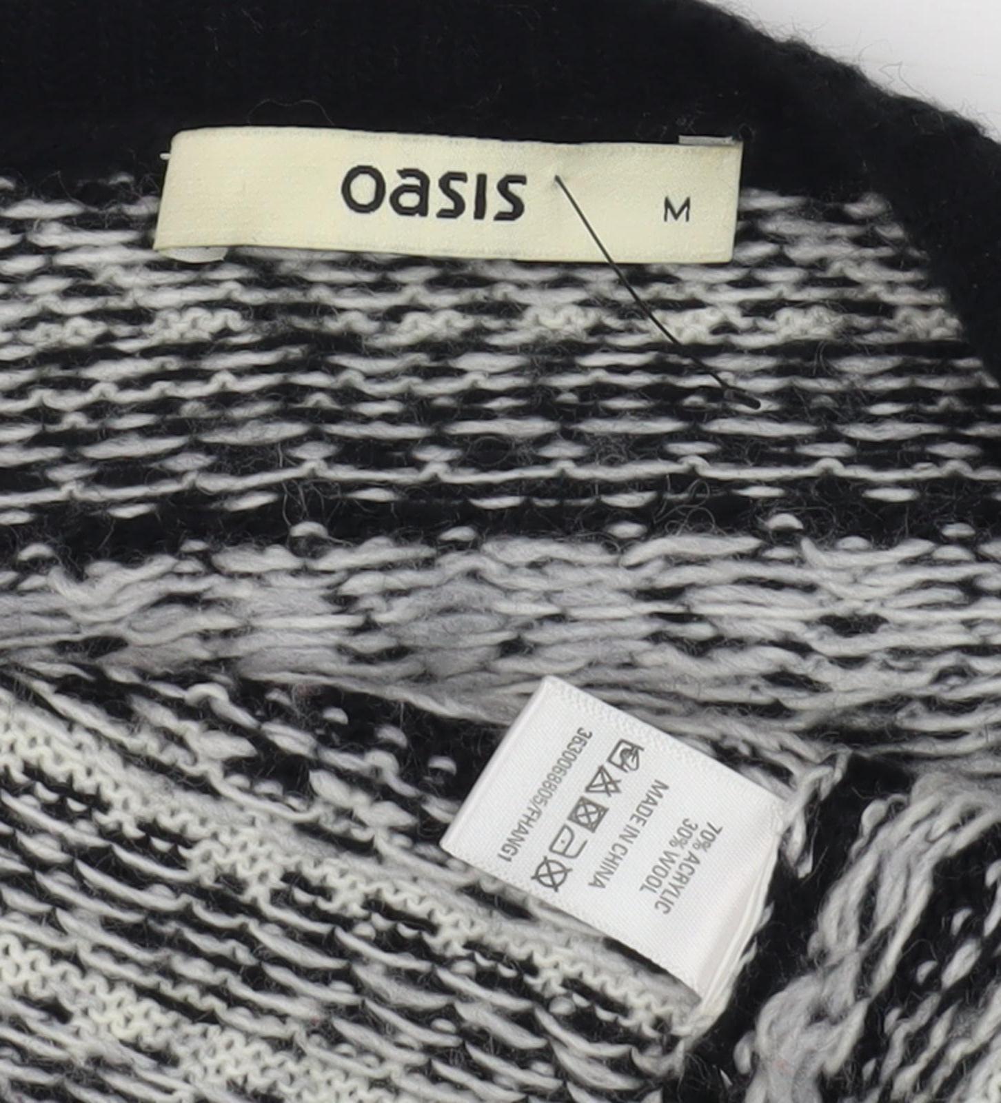 Elevate your winter wardrobe with this stylish Oasis cardigan in classic black and featuring a Fair Isle pattern. This women's cardigan, in size M, is designed to provide both comfort and warmth. Crafted from a blend of acrylic and wool, it promises a cosy fit ideal for chilly days. The long sleeves and open front style make it a versatile layering piece, perfect for casual outings or relaxing at home. This machine washable knit fabric ensures easy care and maintenance. The timeless design embodies the winter season's spirit while keeping you snug and stylish. Don't miss out on this excellent condition cardigan, a must-have addition for those looking to combine fashion with functionality.