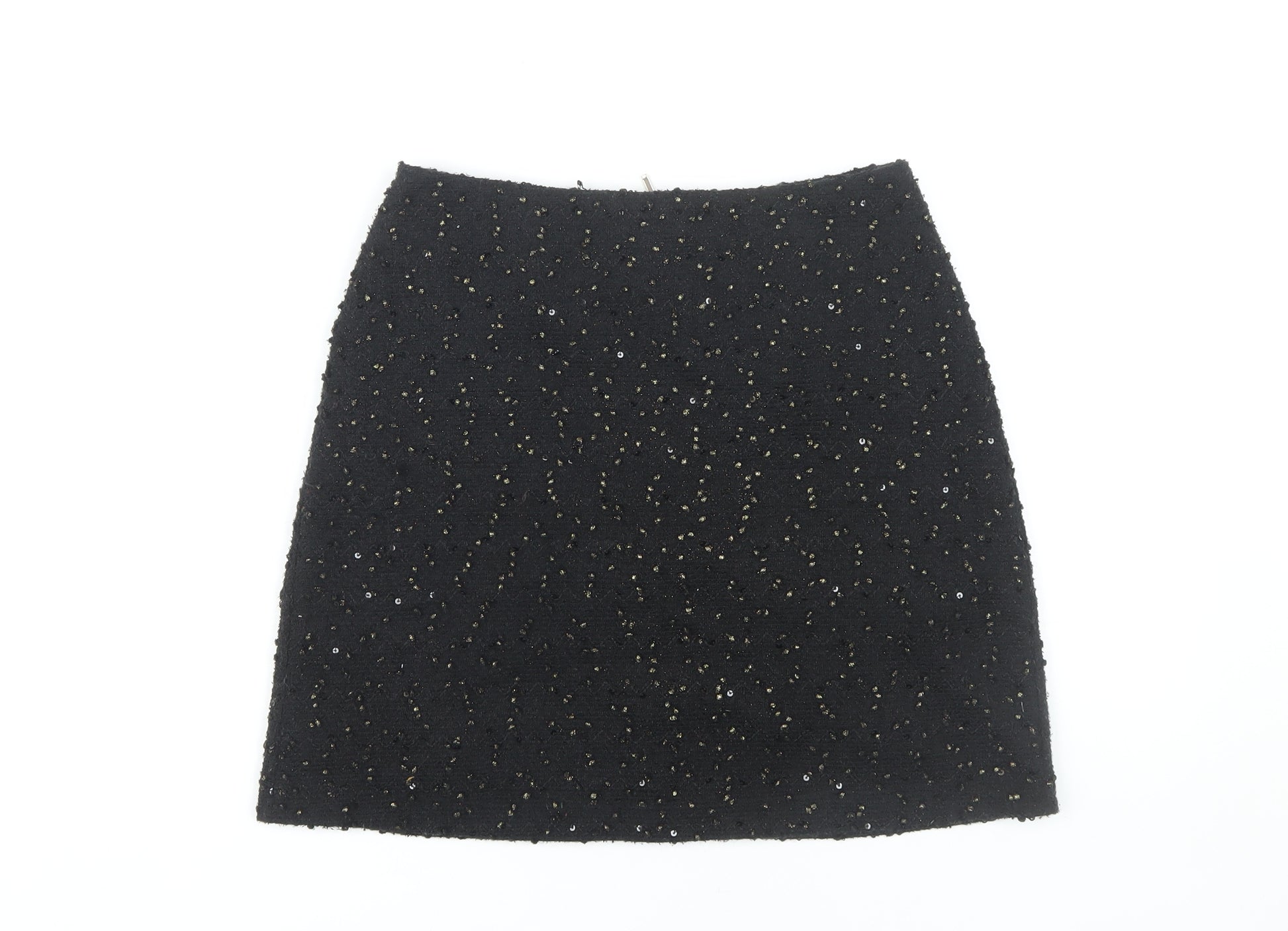 Step out in style with this chic Oasis Women’s Black Sequin Mini Skirt designed to add a touch of glamour to your wardrobe. Made from 98% polyester and 2% elastane, this skirt offers a sleek and comfortable fit. Its mini length and sequin accents make it an ideal choice for party or cocktail occasions, ensuring you stand out in any crowd. The skirt features a zip closure at the back for easy wearing, while its timeless black hue offers versatile styling. Though previously worn, it remains in excellent condition, ready to bring sparkle to your outfit. Ideal for mixing and matching with tops and accessories for a night out. Perfect for women who love to shine in every situation. Machine washable for easy care, making it a practical yet stylish addition to your collection.