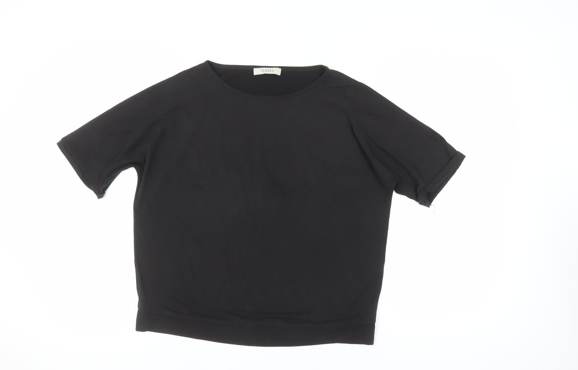 This Oasis women's black T-shirt is a must-have staple for your wardrobe. Crafted from a comfortable cotton blend with a touch of elastane, this T-shirt offers a regular fit that ensures easy movement and a relaxed feel. Its jersey fabric and crew neck design make it perfect for casual wear, while the solid black colour is versatile enough to pair with a variety of outfits. Suitable for all seasons, this chic T-shirt is a reliable choice whether you're dressing up or keeping it simple. Its short sleeves provide a classic and clean silhouette, ideal for any day. Machine washable for easy care, this T-shirt combines style and functionality, making it an essential piece in any women's wardrobe. Grab yours today and elevate your everyday fashion.