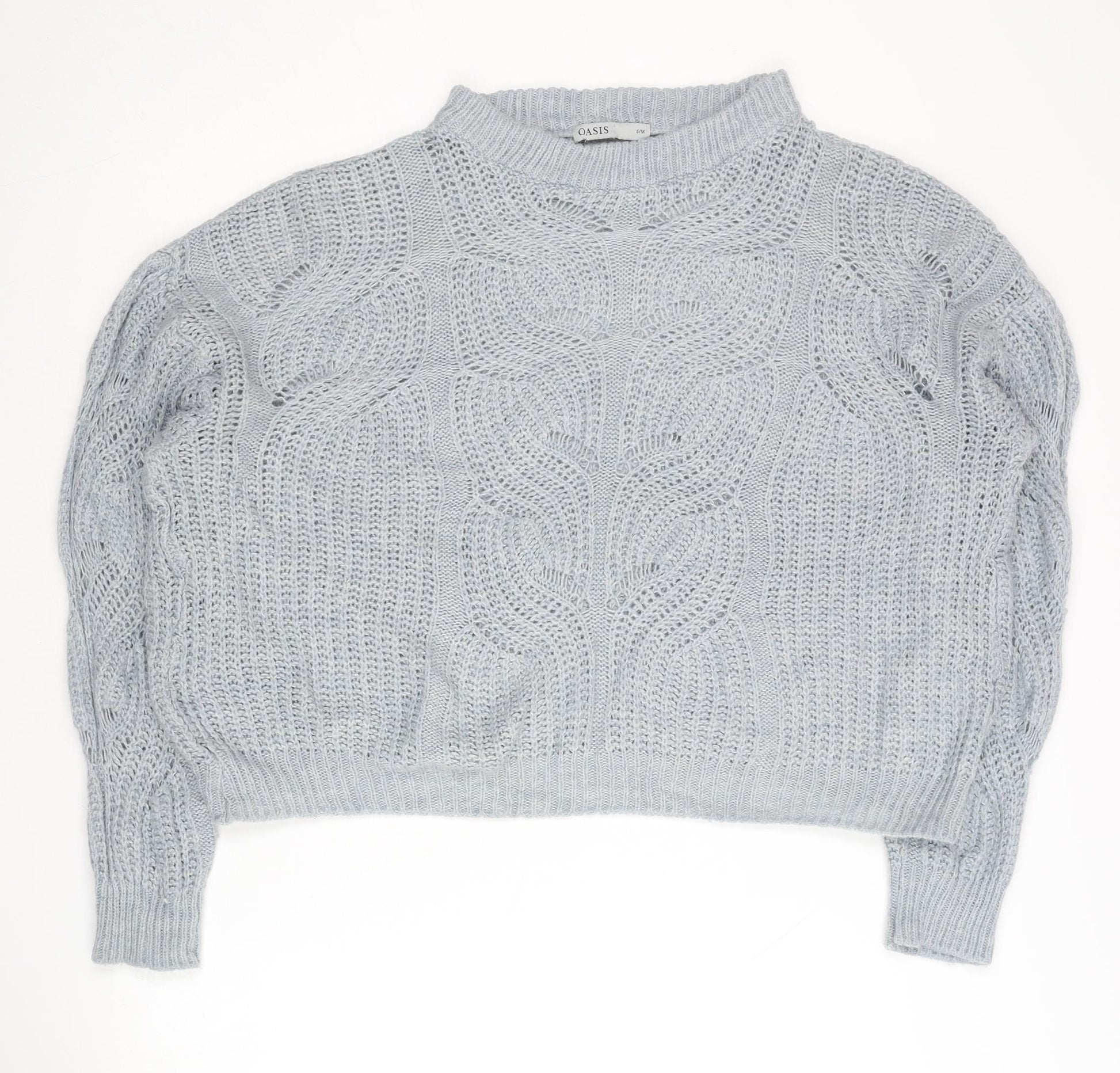 Elevate your wardrobe with this stylish and cosy Oasis women’s cable-knit pullover jumper, designed to keep you looking fabulous throughout the cooler seasons. Crafted from a premium blend of materials including acrylic, polyamide, wool, and viscose, this jumper offers an ideal balance of warmth, softness, and durability. The luxurious grey tone makes it an effortlessly versatile piece that pairs beautifully with everything from jeans to skirts, making it a valuable addition to any outfit rotation.The mock neck gives this jumper a modern, refined edge, while the intricate cable-knit pattern across the front adds a classic, textured appeal that never goes out of style. Its long sleeves and soft knit fabric provide comfort and coverage, making it perfect for layering on chilly autumn and winter days. The regular fit ensures it’s flattering yet easy to wear, giving you both comfort and style in one must-have garment.Designed for versatility, this jumper is ideal for casual wear, whether you’re heading out for a coffee, doing some weekend shopping, or enjoying a countryside walk. It’s also machine washable for easy care, making it as practical as it is fashionable. The timeless design means you’ll be reaching for it season after season.In excellent pre-owned condition, with only light signs of wear and no visible flaws, this Oasis jumper represents both quality and style. Pair it with skinny jeans and ankle boots for a chic everyday look or dress it up with a midi skirt and statement jewellery for a more polished ensemble.Every wardrobe deserves a staple knit like this one – warm, stylish, and endlessly wearable. Don’t miss the opportunity to add this elegant grey Oasis cable-knit jumper to your collection. It’s a versatile piece you’ll love wearing again and again.