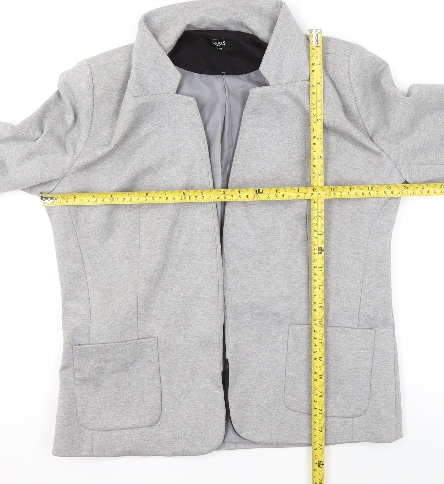 Elevate your workwear and smart-casual wardrobe with this beautiful Oasis women’s grey blazer in size 10. Designed with a softly structured silhouette, this single-breasted jacket combines style with effortless comfort. The blazer features a modern open front design with clean lines, practical front patch pockets, and tailored seams that flatter the figure while maintaining a sleek look. Cut from a cotton-rich jersey fabric with added polyester and elastane, it ensures both softness and stretch for easy everyday wear. Fully lined in smooth polyester, the blazer drapes beautifully while offering a refined finish suitable for professional and semi-formal occasions alike. Ideal for transitional seasons such as autumn and spring, it pairs effortlessly with trousers, skirts, or dresses, making it a versatile staple for business, casual meetings, or workwear settings. Simplistic yet polished, the grey tone complements a wide range of outfits and accessories while providing a timeless wardrobe essential you’ll reach for time and again. In excellent pre-owned condition, this Oasis blazer has been well cared for and shows minimal signs of wear, ready for you to enjoy. Perfect for women seeking balance between comfort and sophistication, it’s an easy styling piece that seamlessly transitions from office hours to weekend engagements. Add a touch of understated elegance to your collection with this tailored, machine-washable grey blazer that embodies Oasis’s signature modern feminine style.
