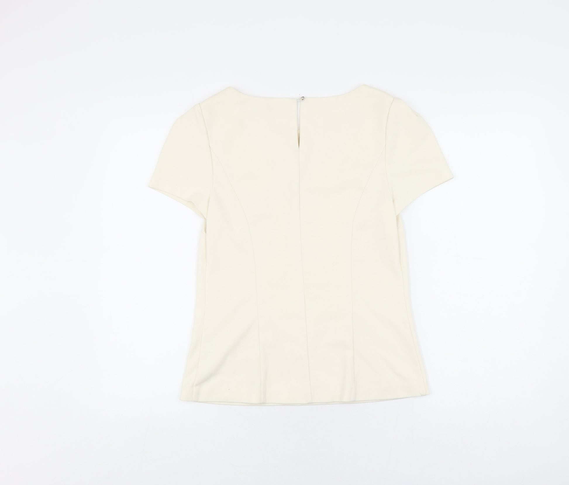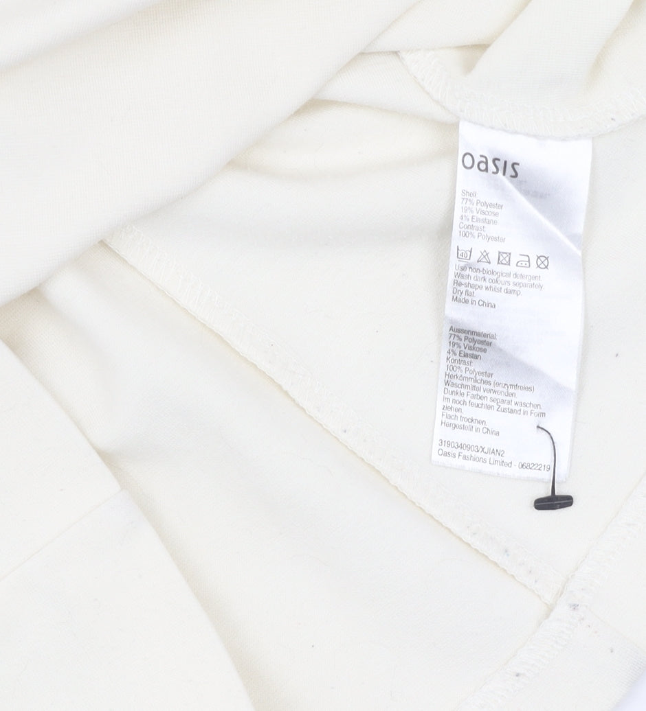 Step out in style with this exquisite Oasis blouse, crafted for women who appreciate elegance and comfort. In a chic ivory colour, this top adds a touch of sophistication to any ensemble. Tailored with a regular fit and featuring a round neck, it offers timeless appeal that never goes out of style. The blouse is made from a quality blend of polyester, viscose, and elastane, providing stretch and comfort that effortlessly takes you from day to night. Its short sleeves and classic fitted sleeve design make it ideal for the warm, breezy days of spring and summer. With a solid pattern and lined feature, this blouse presents understated elegance. Equipped with a zip closure at the back, it's easy to wear and gives a neat, streamlined look. Designed for casual occasions, it's a versatile piece that pairs beautifully with both jeans and skirts. The jersey fabric adds a touch of luxury, while being practical with machine washable care. Fashionable and functional, this blouse is a must-have addition to your wardrobe.