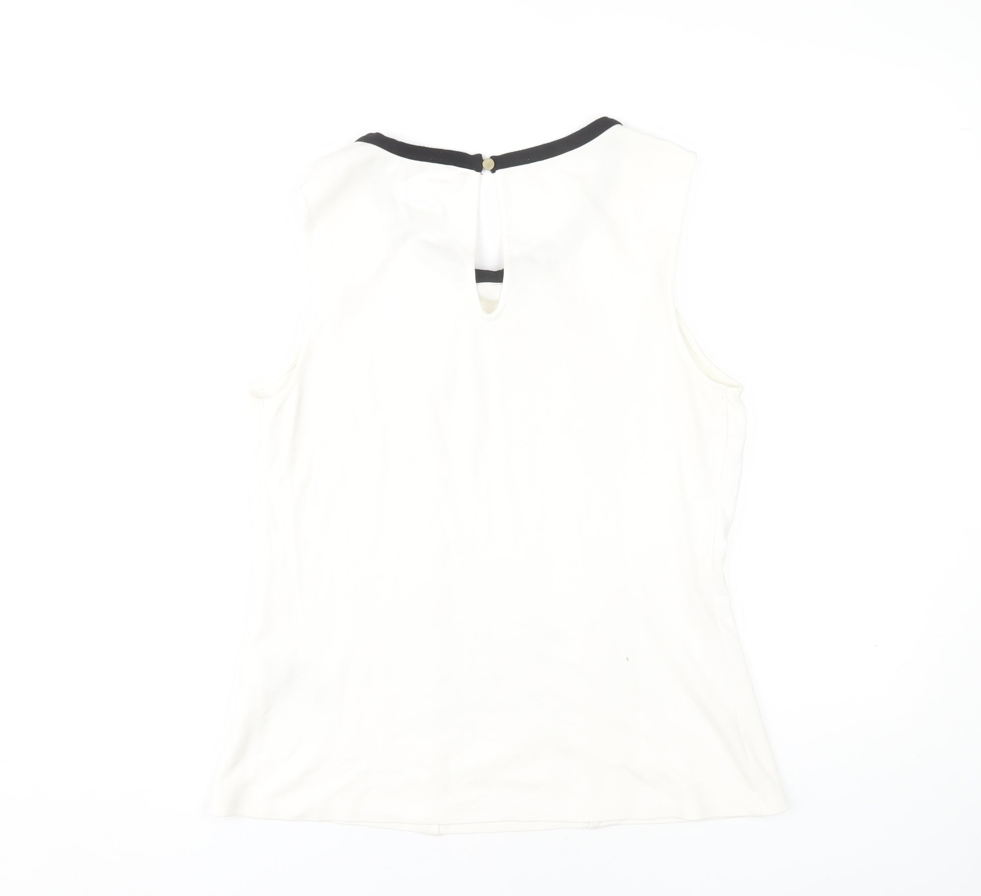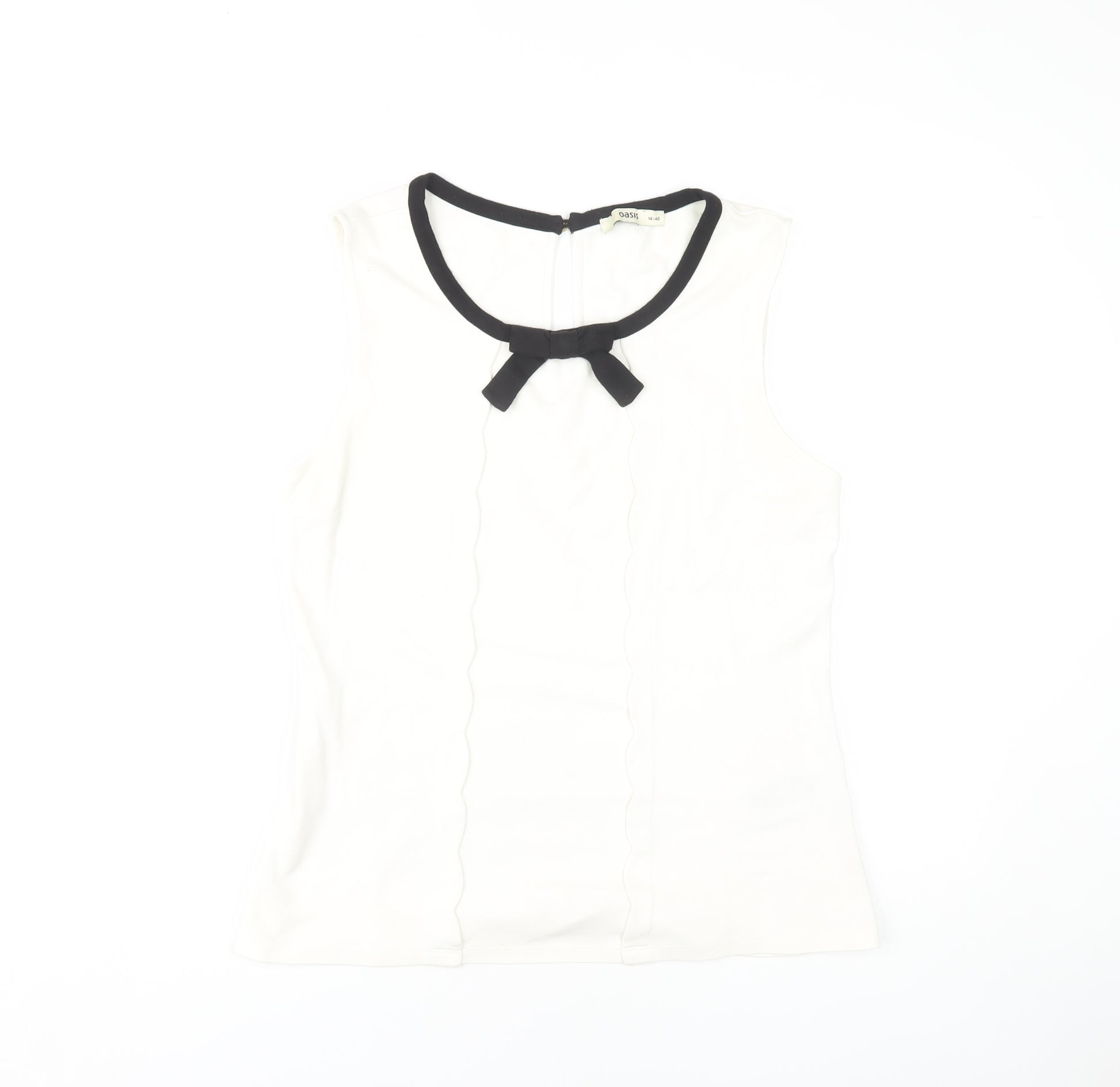 Discover the charm of effortless elegance with this Oasis women's blouse. Perfectly crafted in a versatile white hue, this sleeveless top is designed to make a striking impression. Its solid pattern is enhanced with a chic black bow accent on the crew neckline, adding a touch of sophistication to your everyday style. Expertly made from a soft blend of viscose, polyester, and elastane, this blouse offers comfort and durability. The high-quality materials ensure a breathable fit, making it ideal for casual outings or smart-casual occasions. The blouse features a button closure at the back, completing the sleek design with practicality. Tailored for a regular size 14, this top is perfect for those who appreciate both style and comfort. Upgrade your wardrobe with this elegant piece, suitable for work, social events, or relaxed weekends. Pair it with your favourite trousers or a skirt to create a seamless look. Available with a price that reflects excellent value for money, it's not to be missed.
