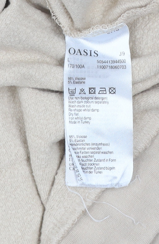 Elevate your casual wardrobe with this beautifully soft Oasis women’s sweatshirt in a warm beige colour. Crafted from a high-quality viscose blend, this sweatshirt promises a smooth, breathable fit with a touch of stretch for added comfort. Designed with long sleeves and a relaxed pullover style, it’s perfect for layering during cooler days. The top features a subtle tonal animal print detail across one side, offering a stylish twist to a classic neutral piece. Made in Turkey, this garment showcases Oasis’s attention to quality construction and refined finishes. The comfortable crew neckline and lightweight feel make it an ideal choice for all-season wear, pairing effortlessly with jeans, skirts, or leggings for an effortlessly chic look. Its soft viscose fabric drapes elegantly, maintaining a flattering silhouette while allowing ease of movement. This versatile sweatshirt combines simplicity with understated detail, making it an excellent addition to any casual, weekend, or travel outfit. Whether worn under a jacket in autumn or on its own in spring, it provides timeless appeal. In excellent used condition with only light signs of wear, it remains ready for many more seasons of styling. With Oasis’s signature design touch, this beige pullover is the embodiment of everyday comfort blended with quiet sophistication — a must-have for those who appreciate relaxed elegance and versatile wardrobe essentials.