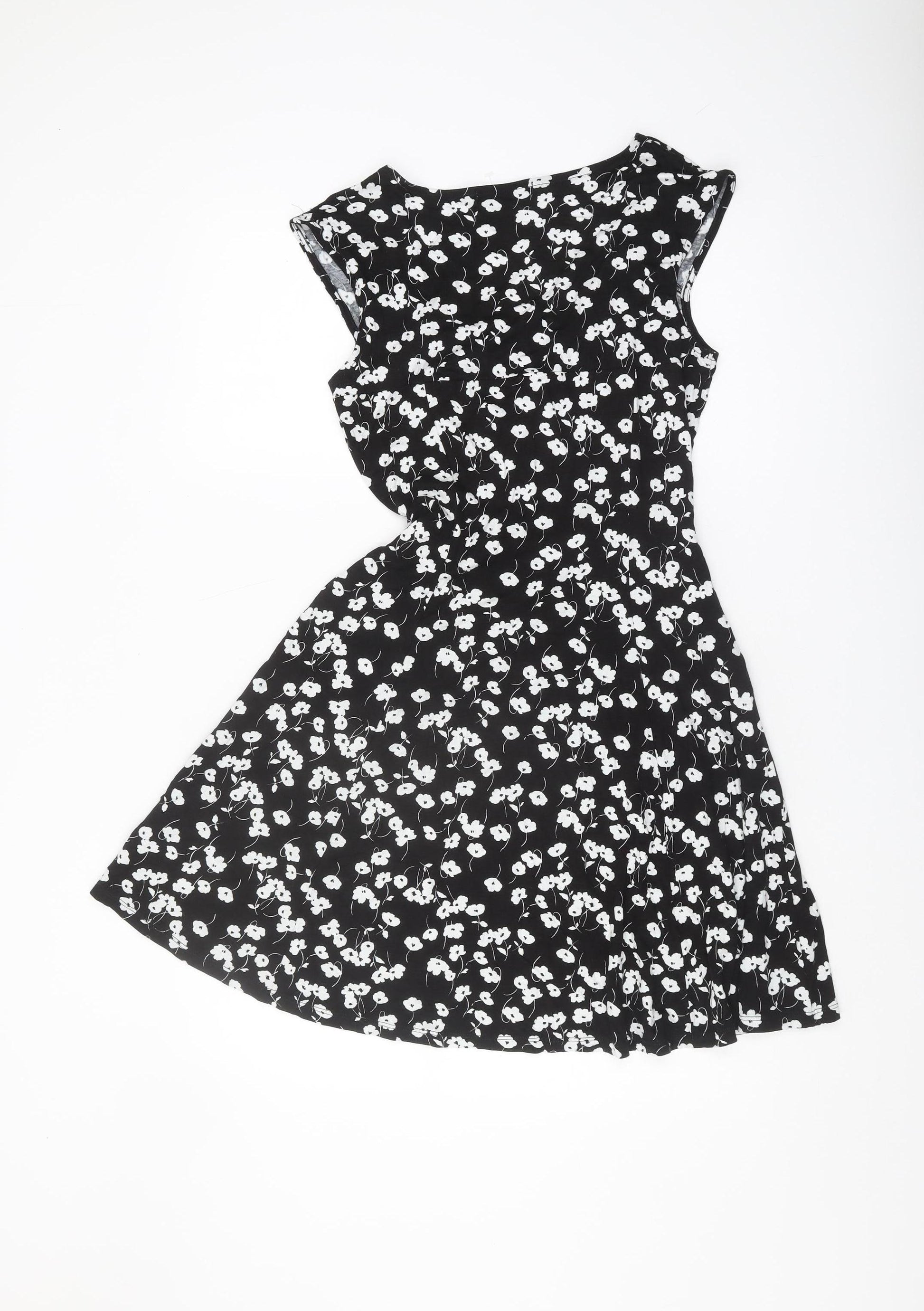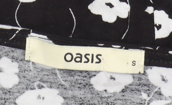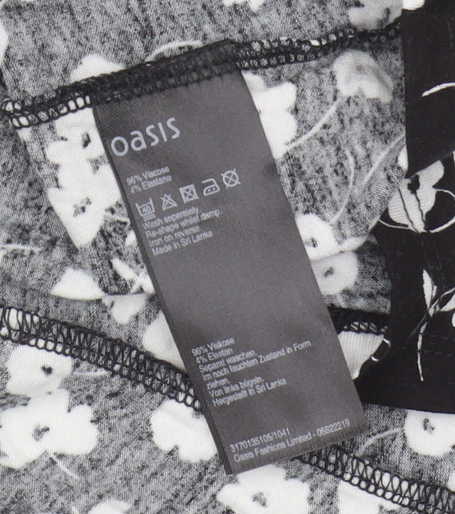 This charming black floral A-line dress from Oasis is perfect for adding a touch of elegance to your casual wardrobe. Its timeless floral print makes it ideal for both spring and summer occasions. With a flattering scoop neck and sleeveless design, it offers comfort and a classic silhouette. Made from a soft and stretchy jersey fabric blend of 96% viscose and 4% elastane, it ensures a comfortable fit while providing ease of movement. Though gently worn, it remains in excellent condition, making it a versatile addition to your dress collection. Embrace simplicity and style with this chic piece that’s perfect for everything from park picnics to casual brunches. Don't miss the chance to enhance your wardrobe with this versatile, fashionable dress.