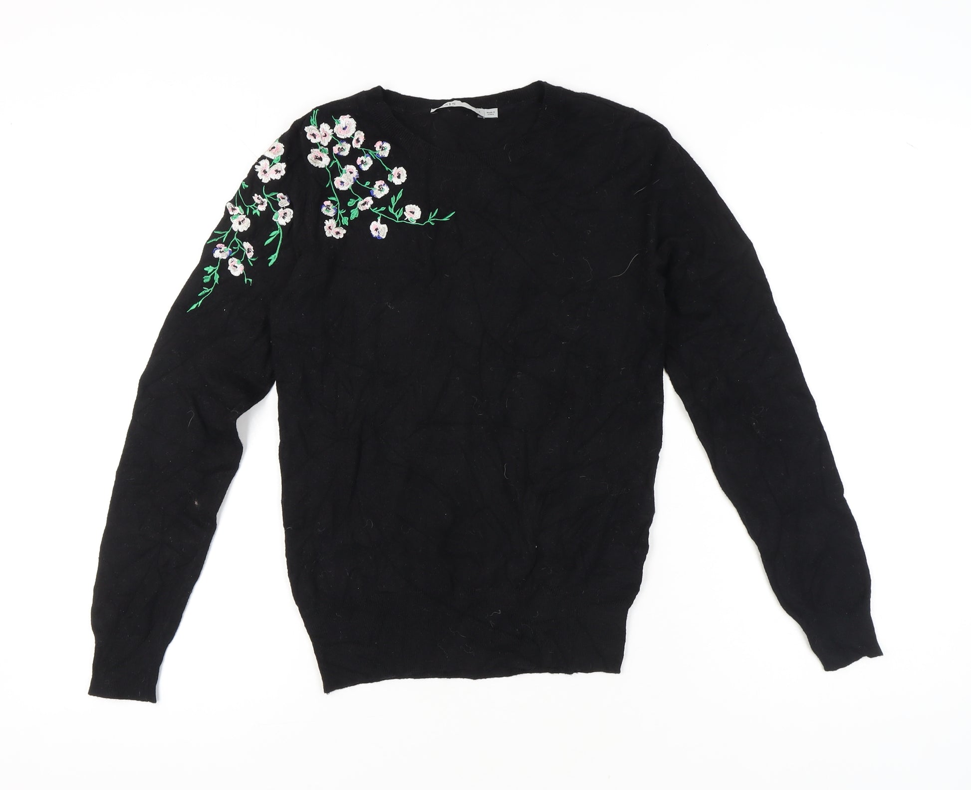 Womens Black Floral Embroidered Pullover Jumper Size S
