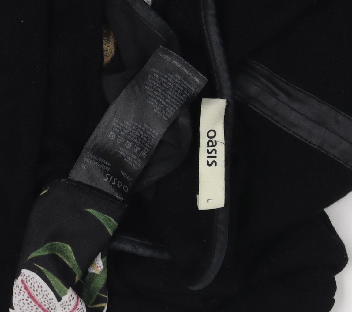 Add a touch of elegance to your wardrobe with this stunning Oasis women's top. Crafted from a blend of polyester and elastane, this black floral embroidered piece offers both style and comfort. The 3/4 sleeves make it perfect for any season, keeping you chic and comfortable. Ideal for various occasions, the intricate embroidery adds a layer of sophistication that can be dressed up or down. In excellent condition with no visible wear or damage, this top is machine washable for easy care. Available in size L, it's perfect for adding a statement to your ensemble while ensuring a flattering fit. Whether you're heading to a casual gathering or a formal event, this top has every element covered to ensure you look your best.