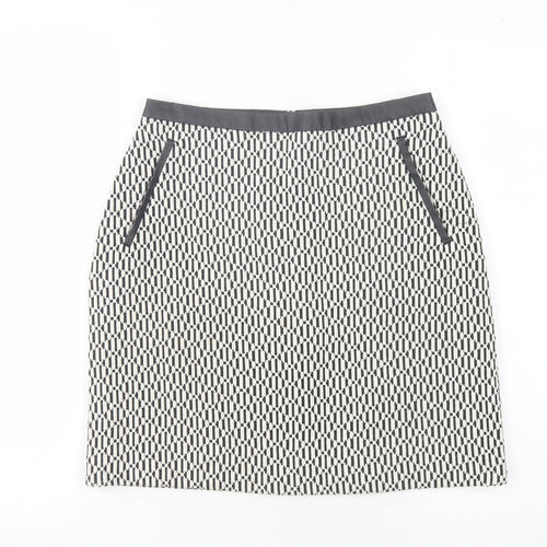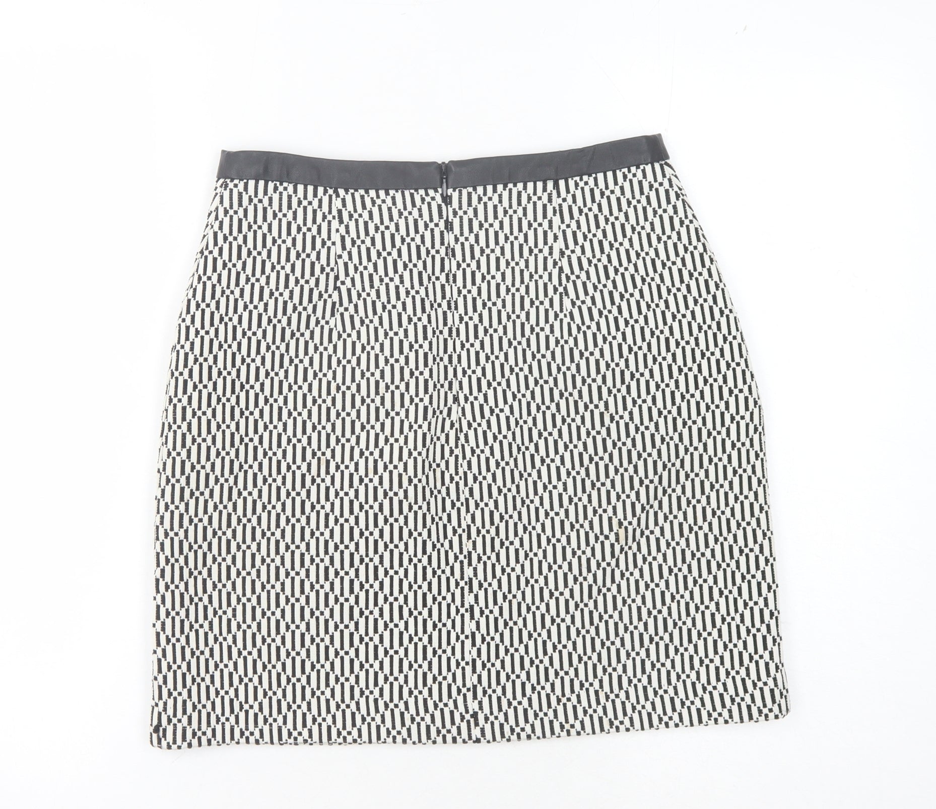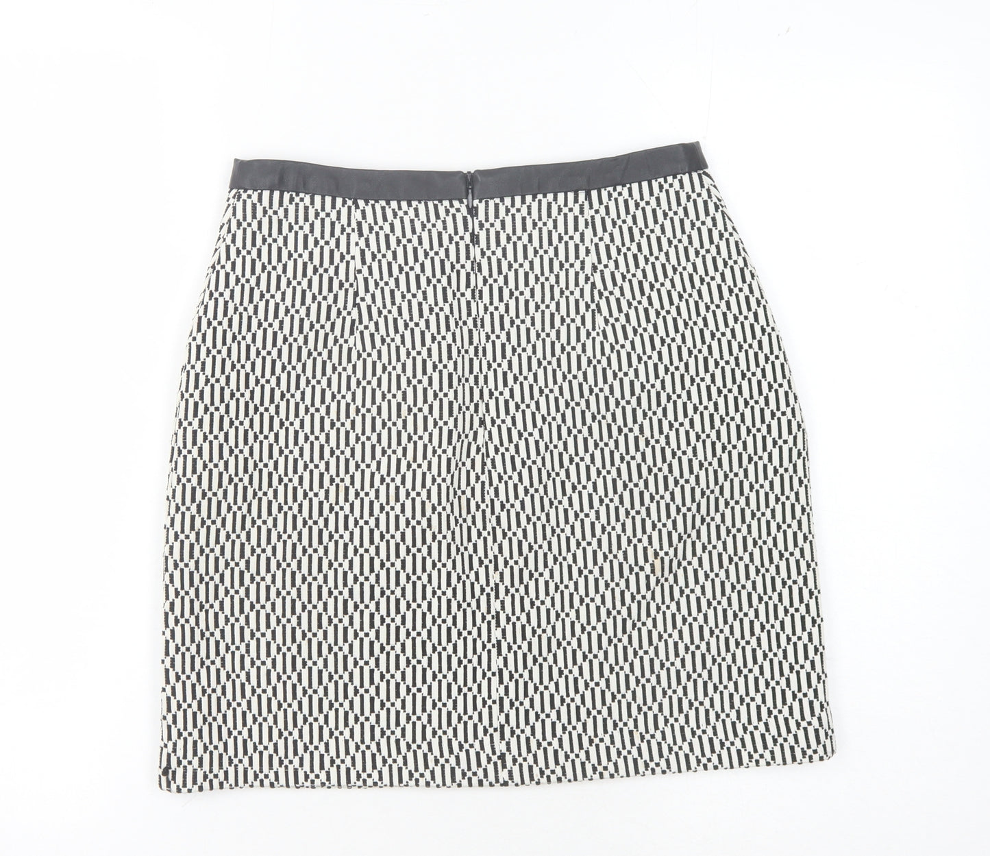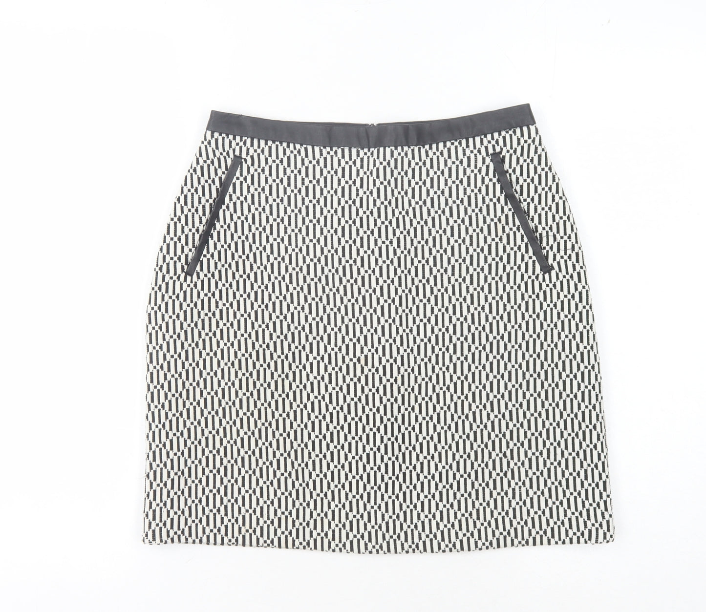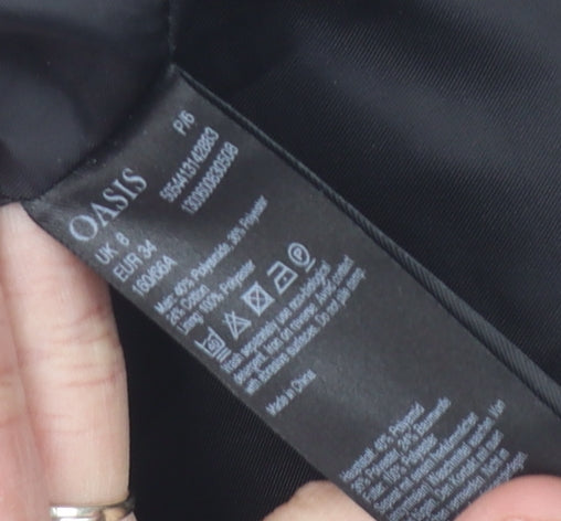 Step into style with this chic Oasis Women's Geometric Pencil Skirt, perfect for both business and casual occasions. Featuring a modern geometric pattern in classic black, this skirt offers a sophisticated look that pairs elegantly with any top. The mid-rise fit ensures comfort, while the convenient zip closure and practical pockets add functionality. Crafted with a high-quality blend of 55% polyester and 45% viscose, this skirt promises durability and ease of wear. Ideal for all seasons, it can seamlessly transition from the office to an evening out. Machine washable for easy care, this skirt is perfect for the busy modern woman. Its excellent condition and timeless design make it a must-have addition to your wardrobe.