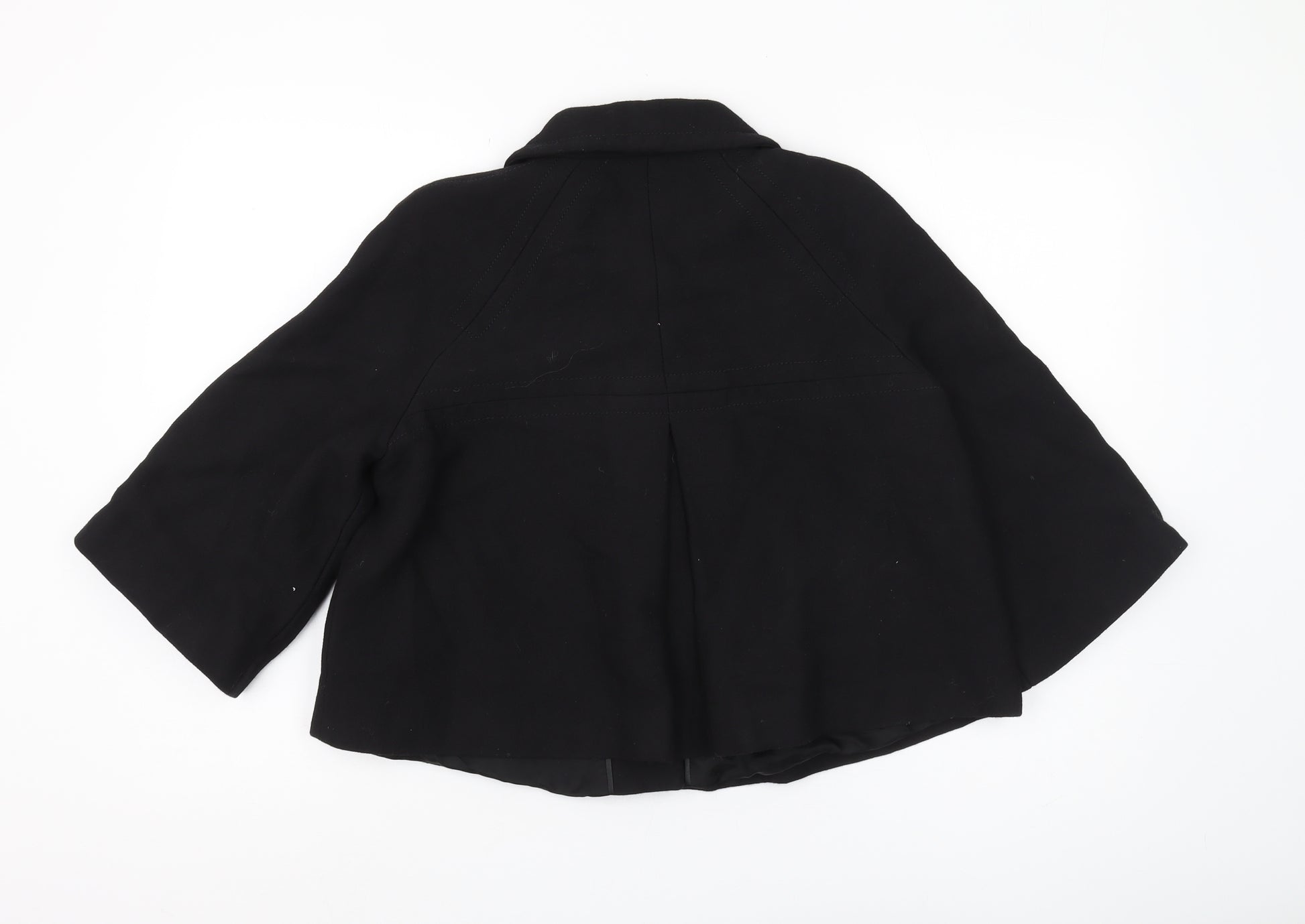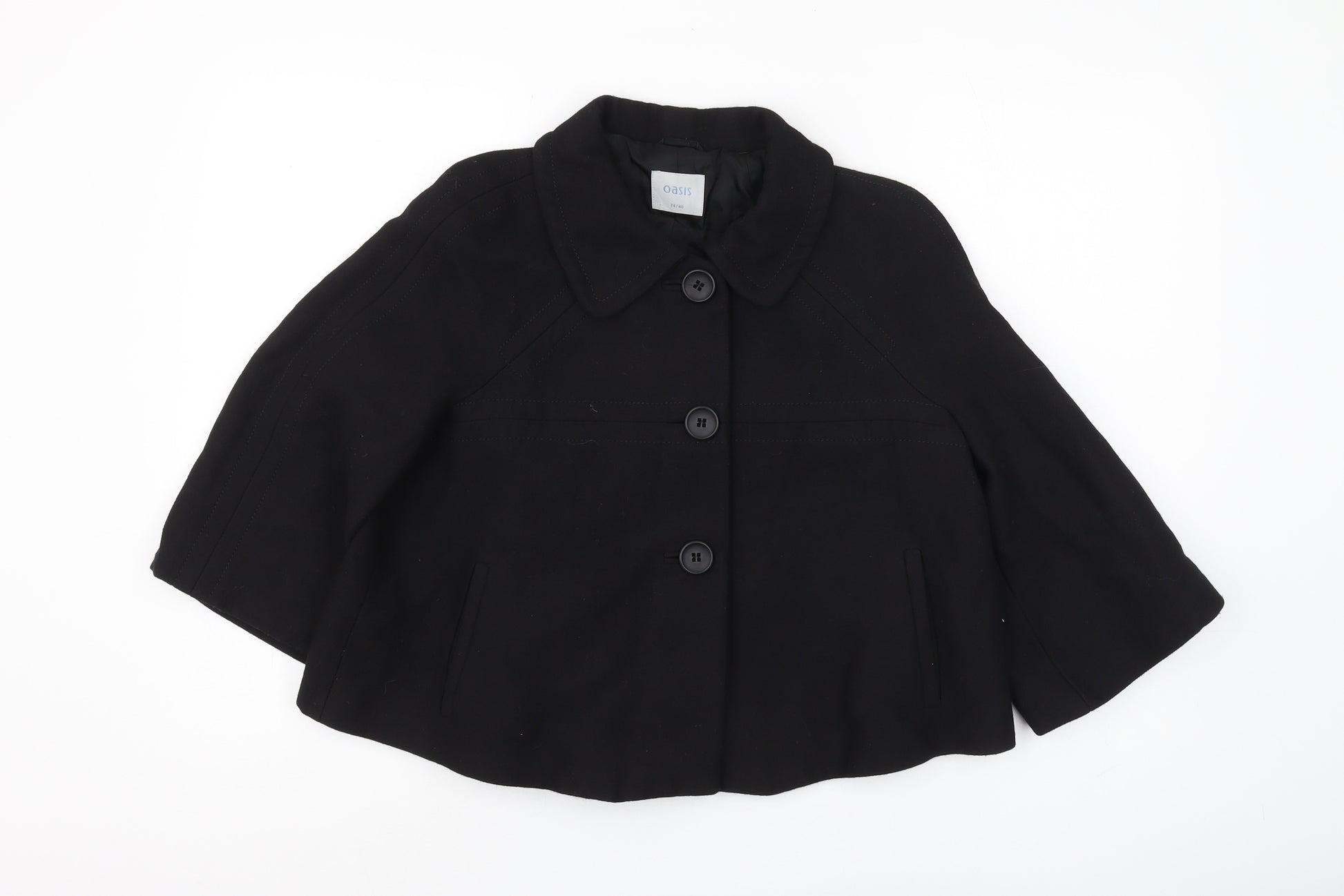 Elevate your outerwear collection with this elegant black pea coat from Oasis. Crafted for a sophisticated look, this women's jacket is perfect for both casual and semi-formal occasions. Designed in a timeless black shade, this jacket effortlessly complements any outfit, making it an essential wardrobe staple. The jacket is crafted from a rich blend of wool for warmth and comfort, while the polyamide content ensures durability and a fine texture. The polyester lining adds a soft, comfortable feel against the skin, making it suitable for autumn and winter wear. Featuring a button closure, this jacket offers a classic aesthetic that never goes out of style. The collared design adds a touch of refinement, while the short length and 3/4 sleeve style give it a contemporary edge. The regular fit allows for easy layering over your favourite tops and sweaters. With no visible signs of wear, this jacket is in excellent condition, promising both style and longevity. Perfect for everyday wear or a light evening out, its versatility is sure to appeal. Handily classified as 'dry clean only' ensures easy care and maintenance. Stay warm and stylish with this Oasis black pea coat and complete your look with effortless grace.