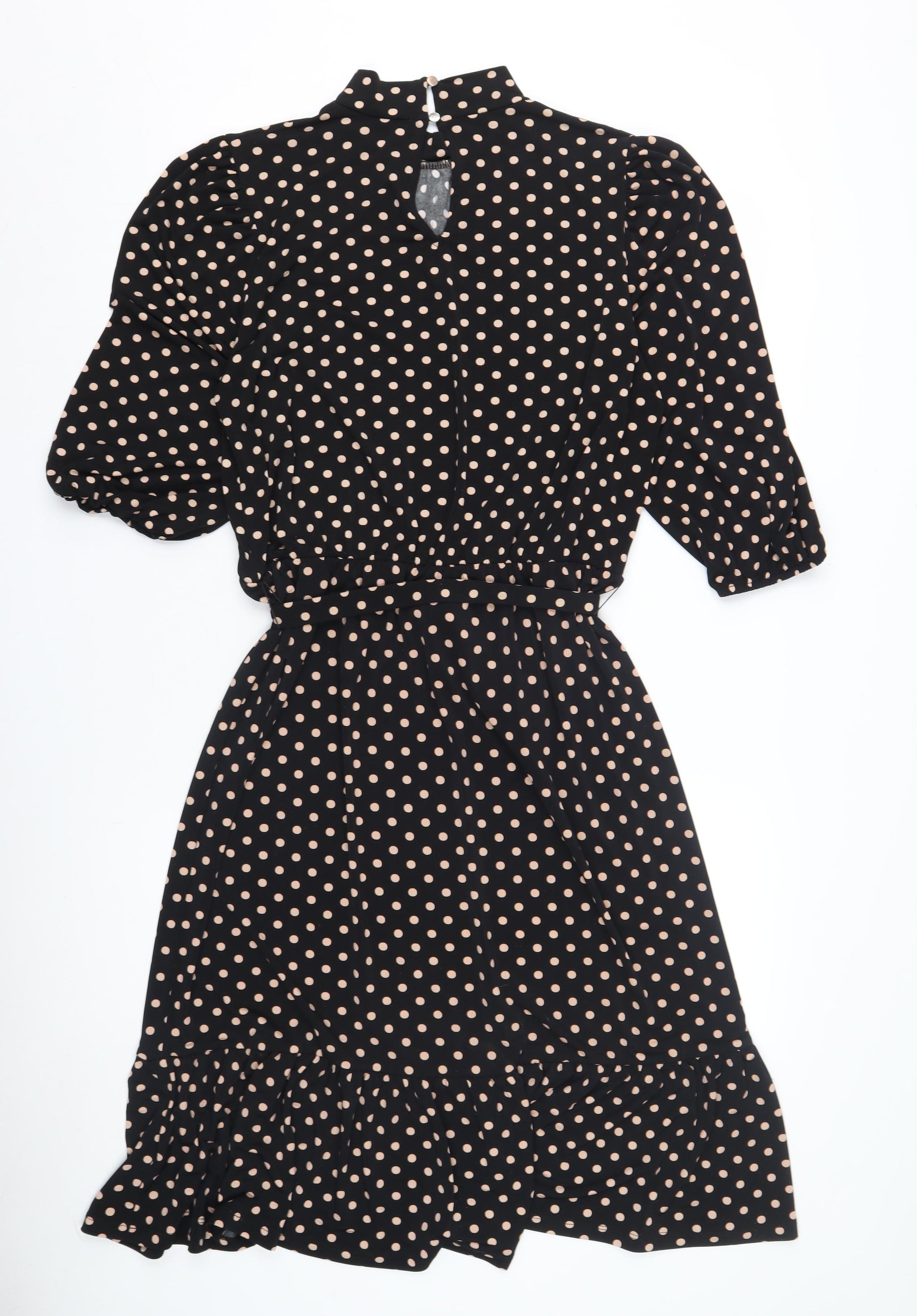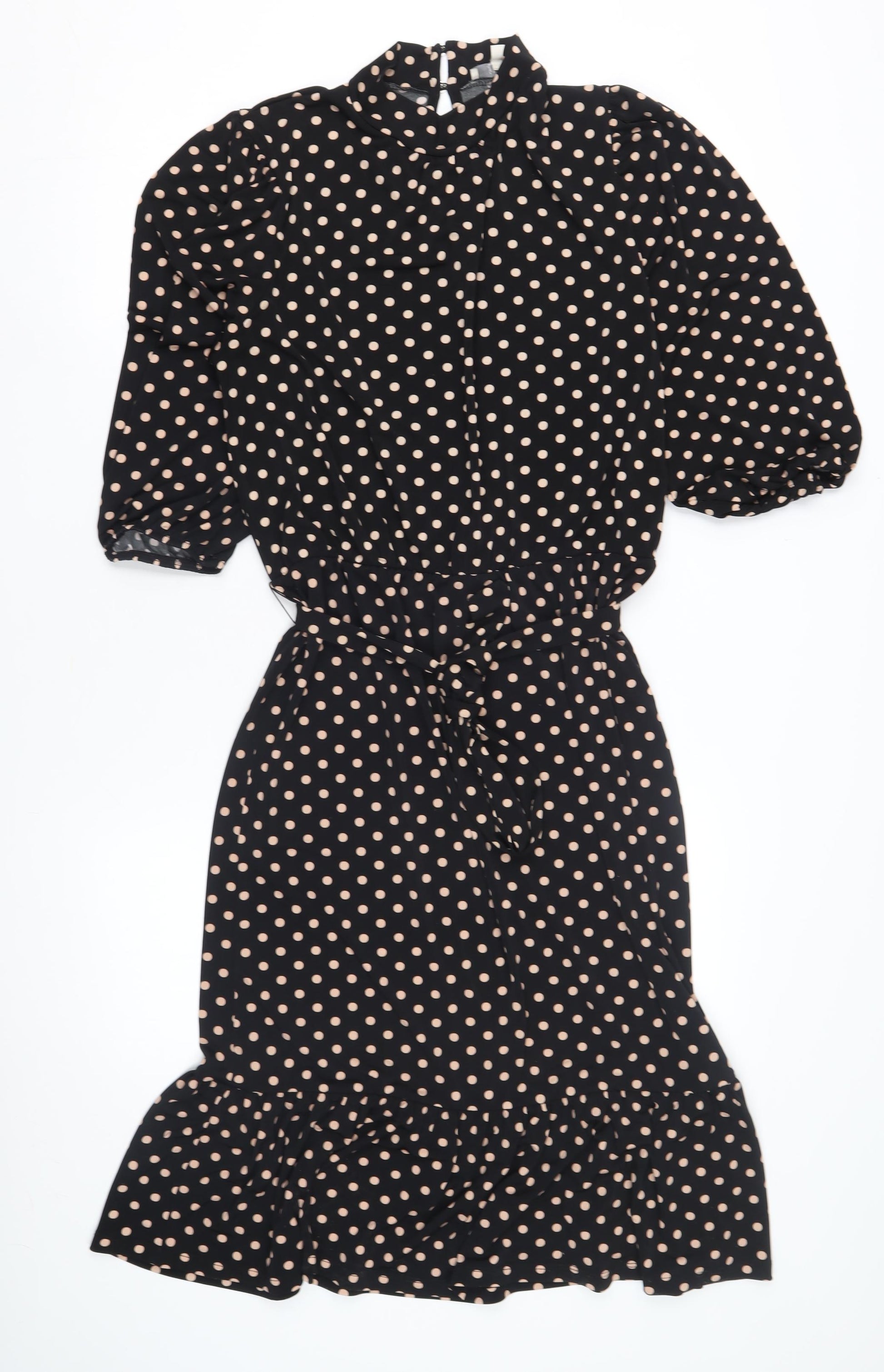 Embrace timeless elegance with this Oasis Women's Fit & Flare Dress, featuring a stunning black polka dot pattern that's perfect for various occasions. Designed with a flattering knee-length cut and a stylish fit & flare silhouette, this dress is ideal for both casual outings and cocktail parties. The high neckline and 3/4 balloon sleeves add a touch of sophistication, while the lightweight woven polyester fabric ensures maximum comfort. It comes with a zip closure for a secure fit and is machine washable for easy care. Perfect for the spring and autumn seasons, this dress is a must-have addition to your wardrobe. The classic design and belted accents offer a chic, versatile look that's sure to turn heads.