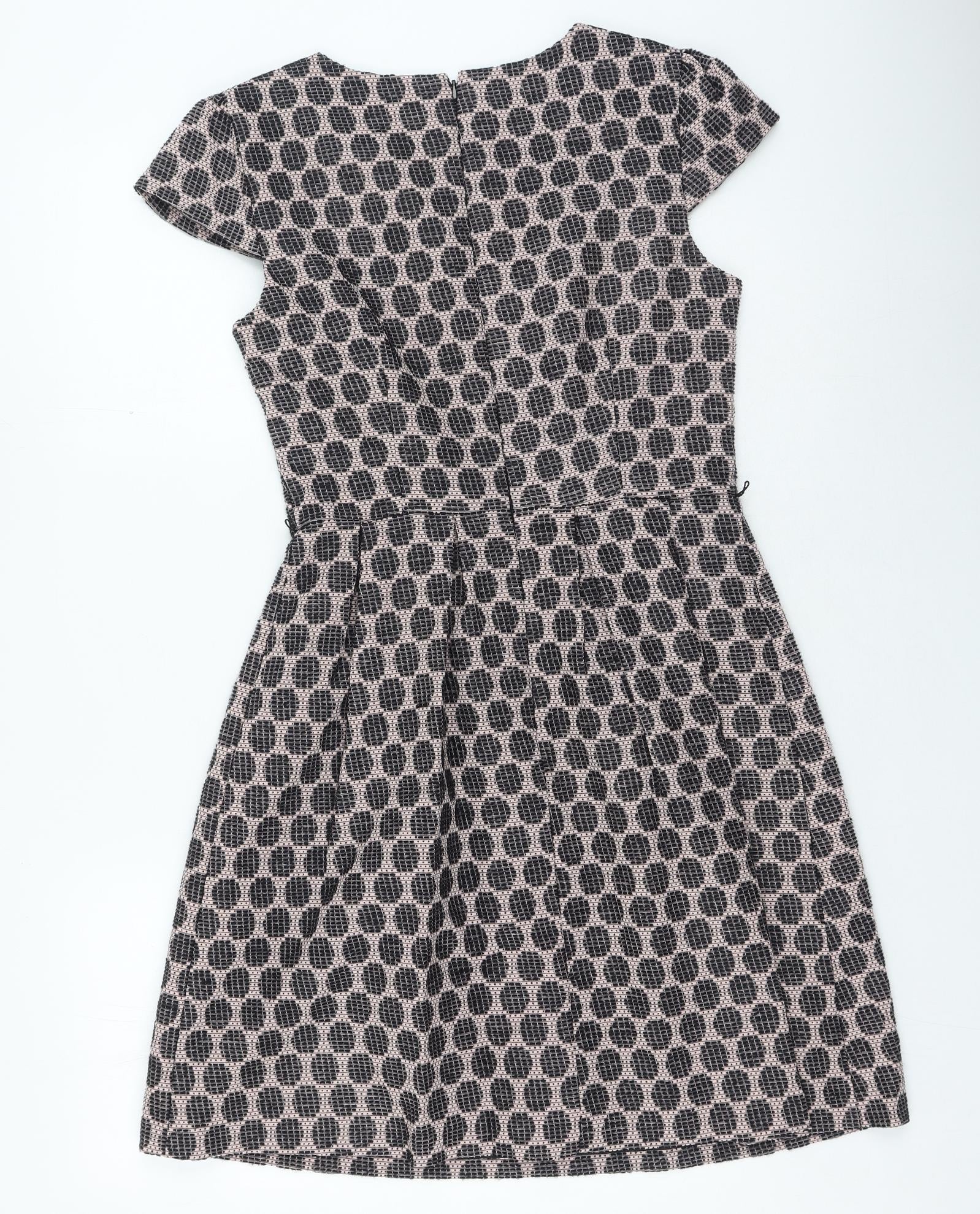 Womens Black Polka Dot Polyester A-Line Size 10 Round Neck Zip