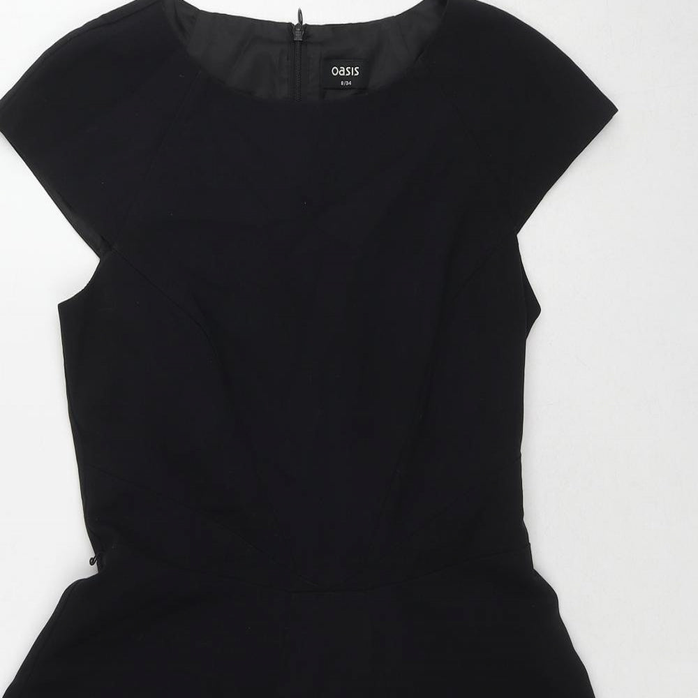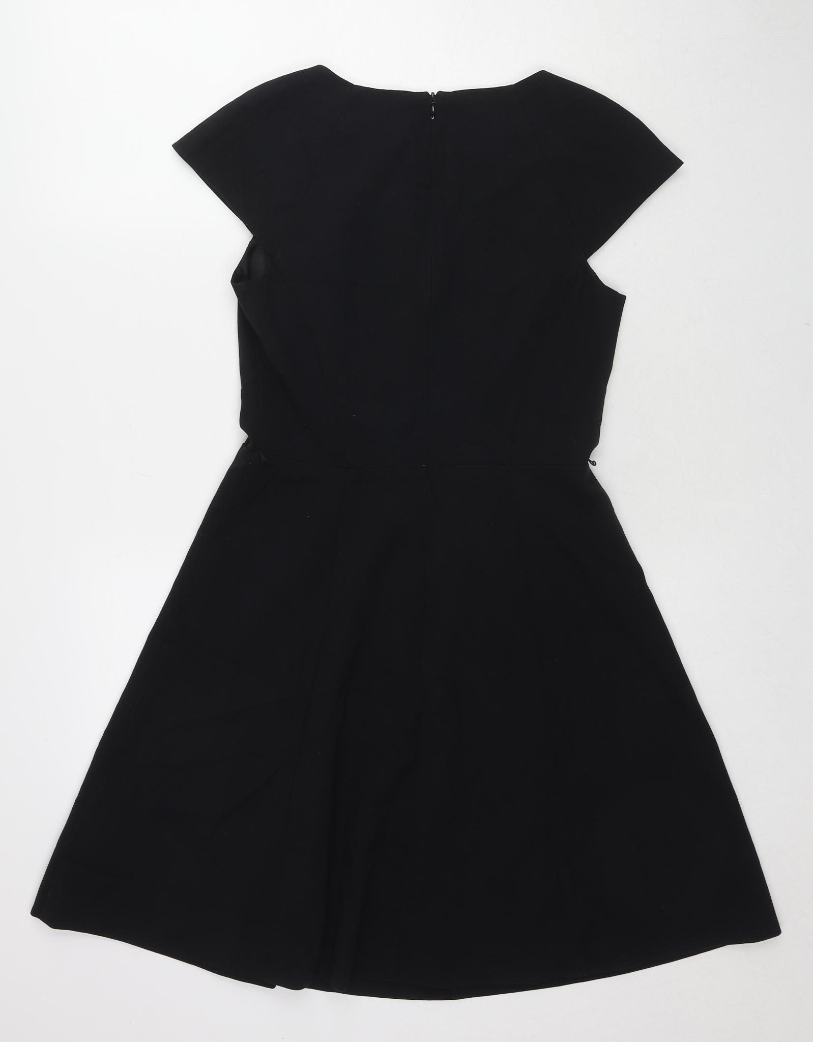 Womens Black Polyester Fit & Flare Size 8 Round Neck Zip